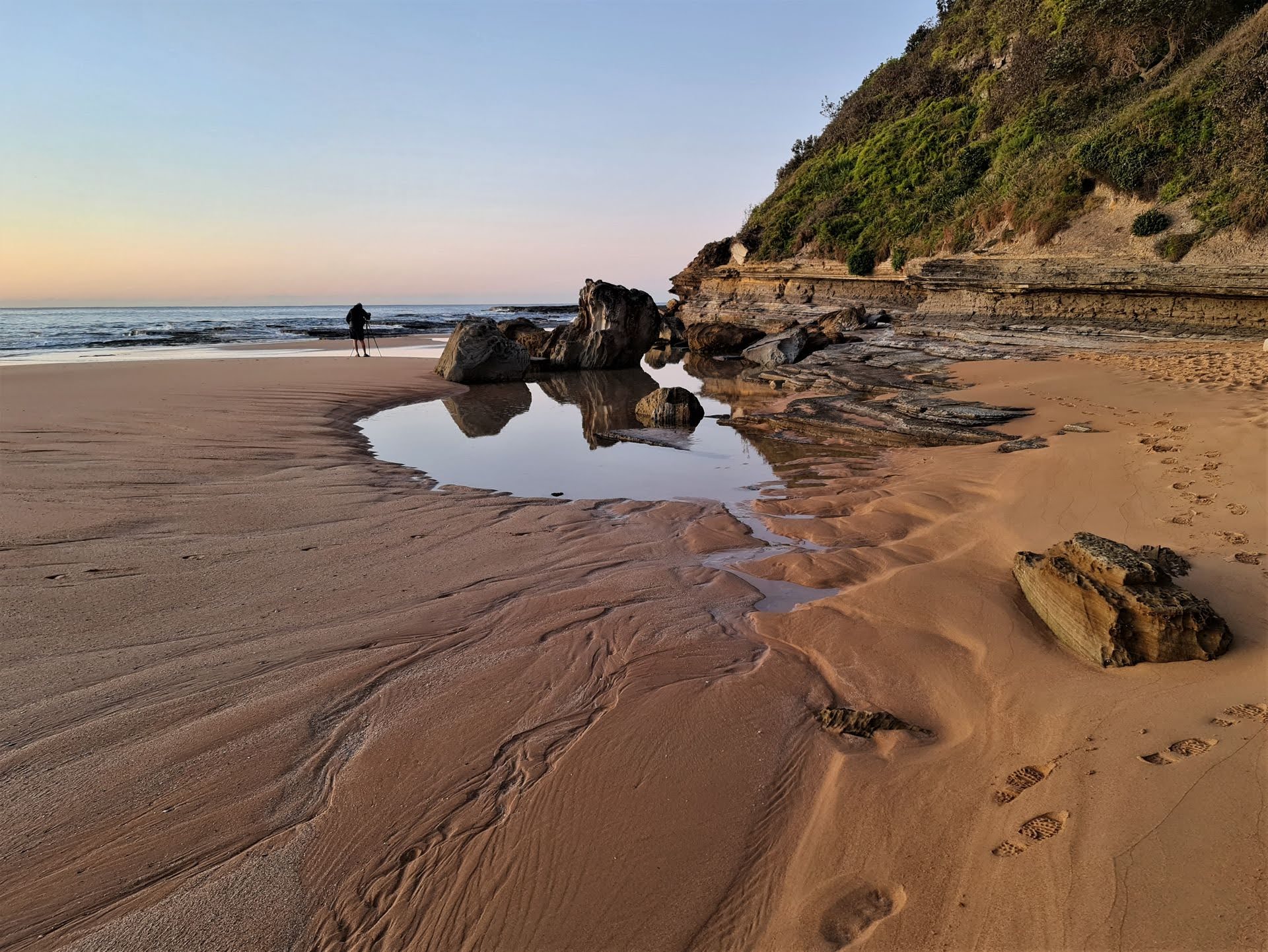 The popular spot for the local photographers to capture the sunrise was the southern end of the beach amongst the rocks, which also is the overnight shelter for the Turimetta Hermit. He usually lets his feelings be known to anyone crossing his path or his space under the rock overhang.