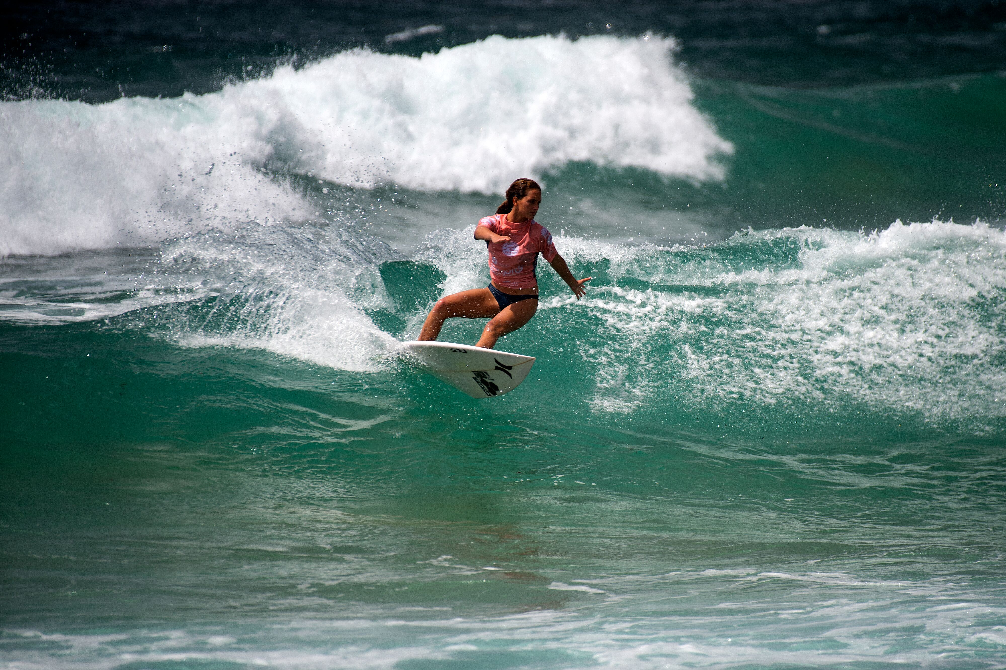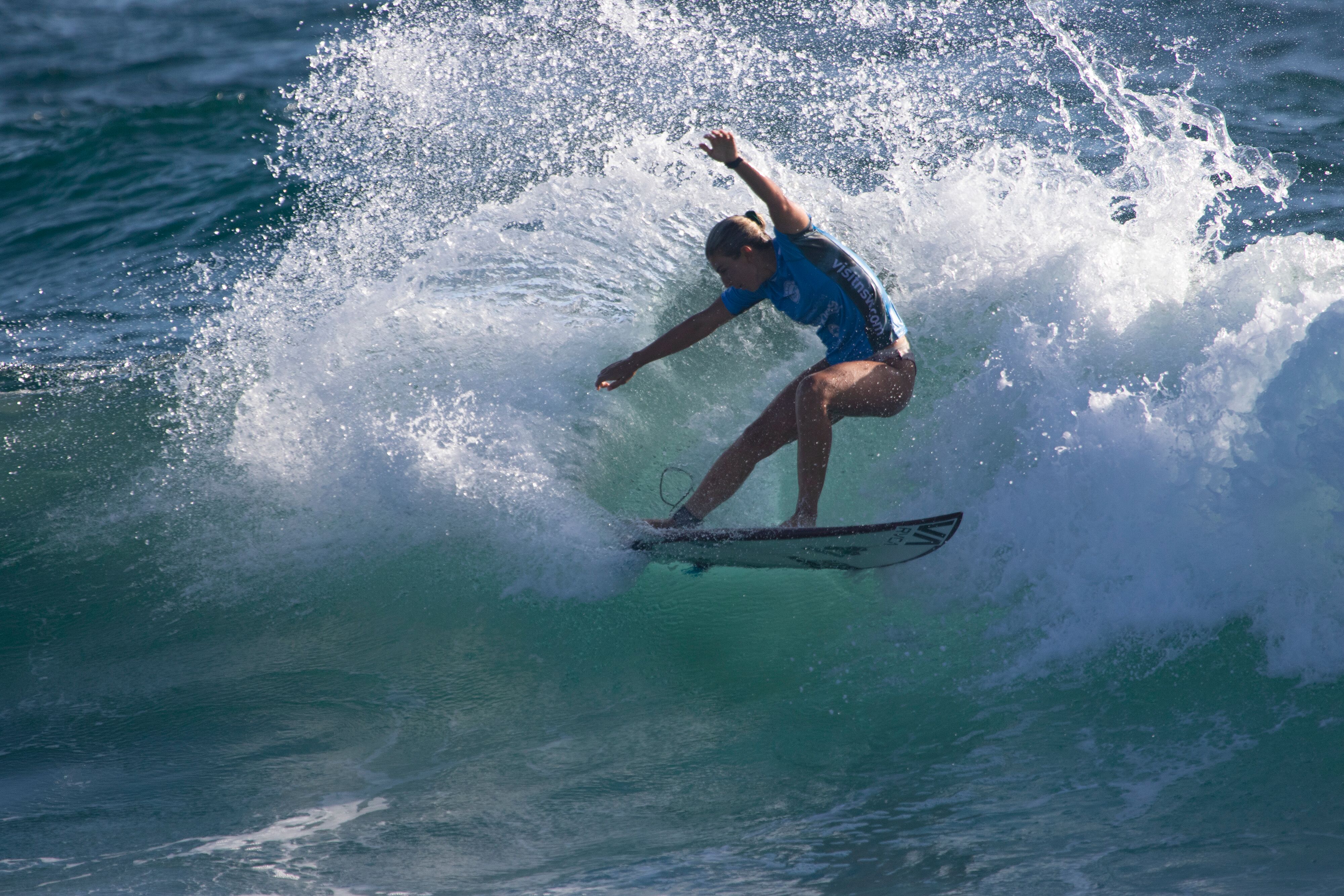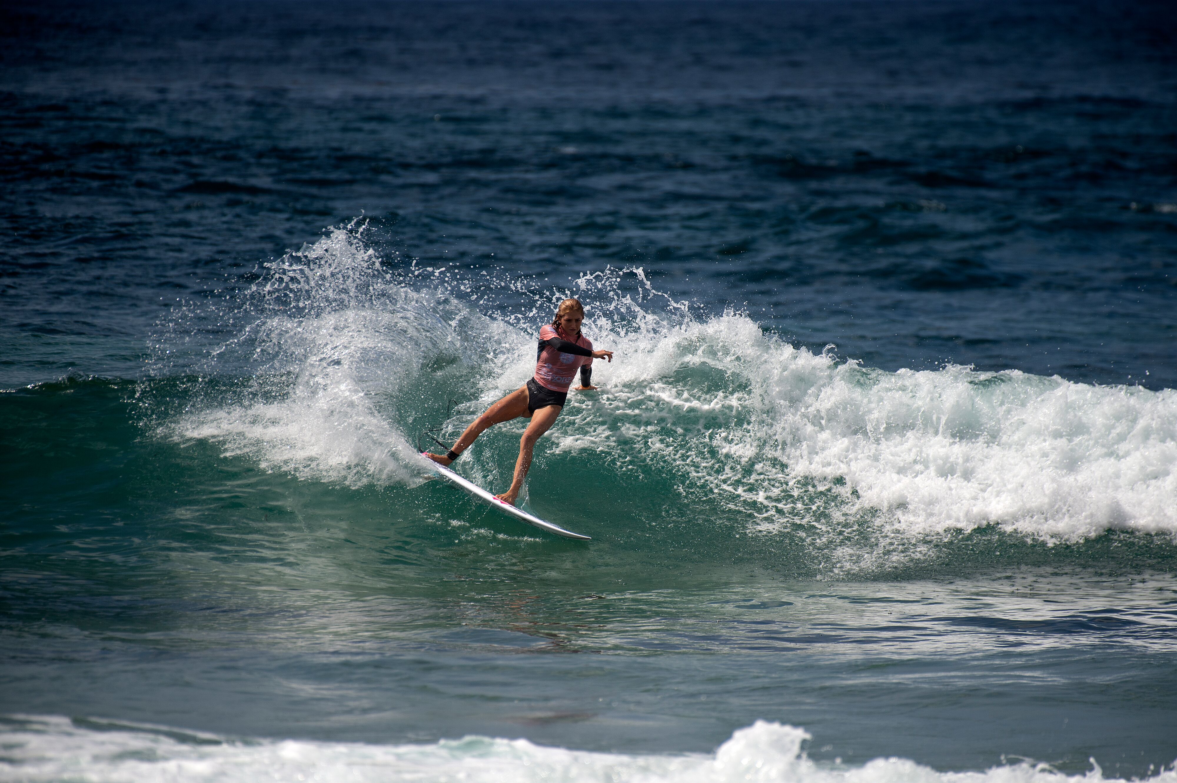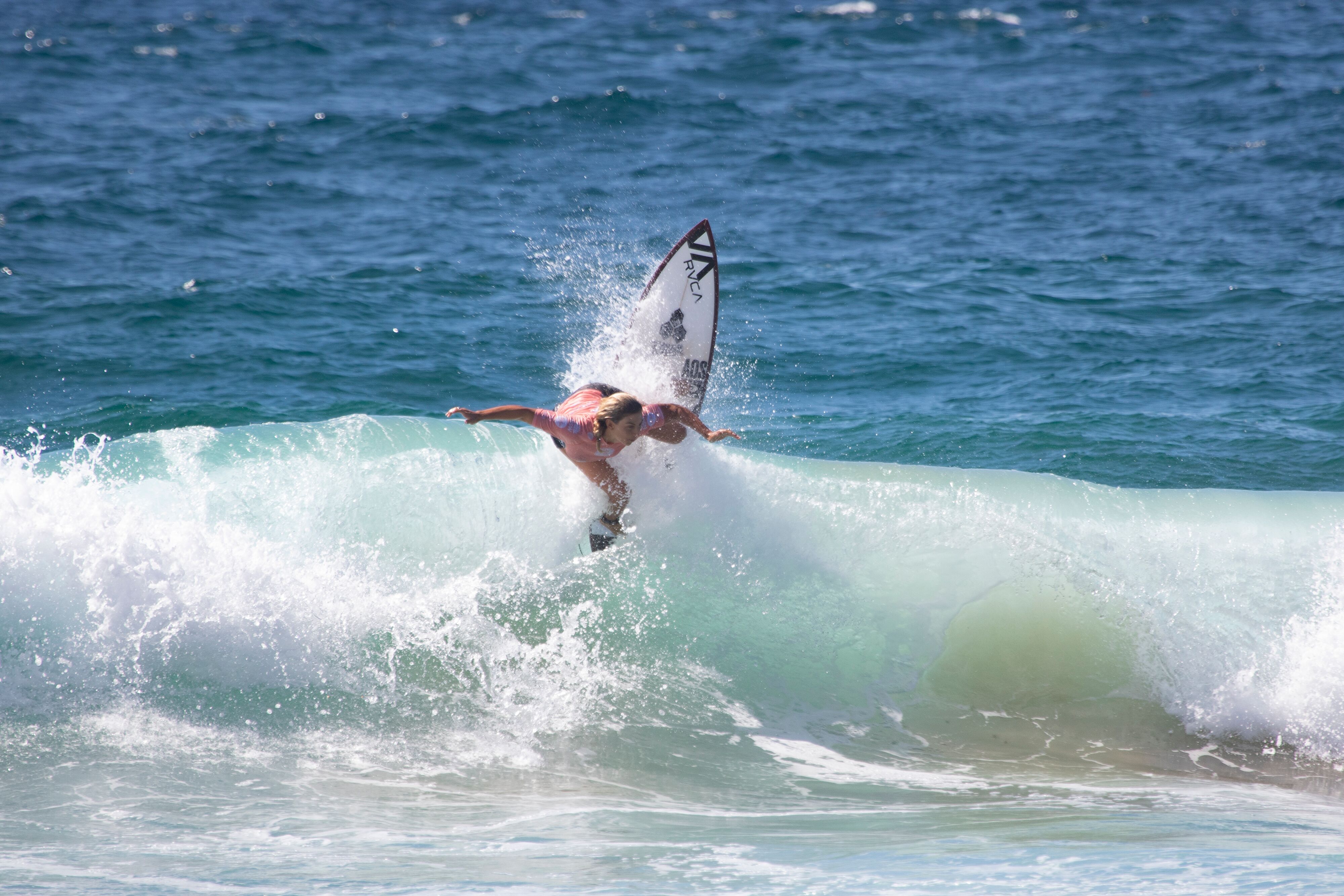 Having recently fallen off the elite Championship Tour last season, California’s Sage Erickson (USA) is looking for a massive result at Avoca to get her re-qualification campaign underway. The former top 10 surfer is familiar with the Central Coast spending half her year at nearby Copacabana Beach with her boyfriend each year. This comfort and familiarity shone through as Erickson posted a 15.67 heat total to progress into round four.