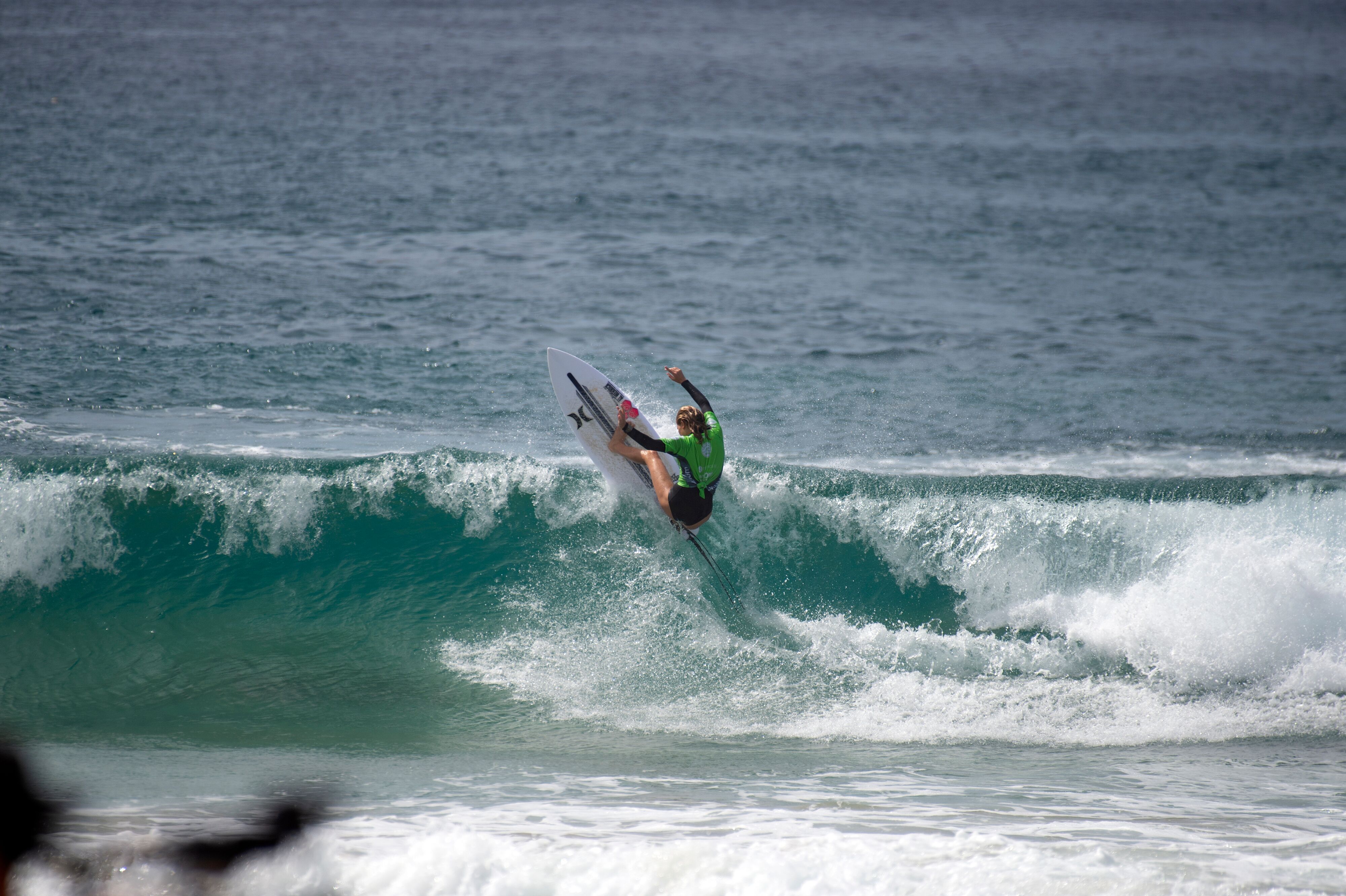 Heat four of round five was a great indication that the future of Australian surfing is in great hands with Queensland duo Reef Heazlewood and Liam O’Brien putting on arguably the heat of the event so far. The two upstarts, who have been turning heads for at least the last six months, dominated the exchange with O’Brien’s razor sharp forehand earning him second place while Heazlewood’s explosive backside garnered a 16.03 heat total and the win. Reef looks well on his way to another big result to go with his recent ninth in Brazil and Final appearance at the Volcom Pipe Pro.
