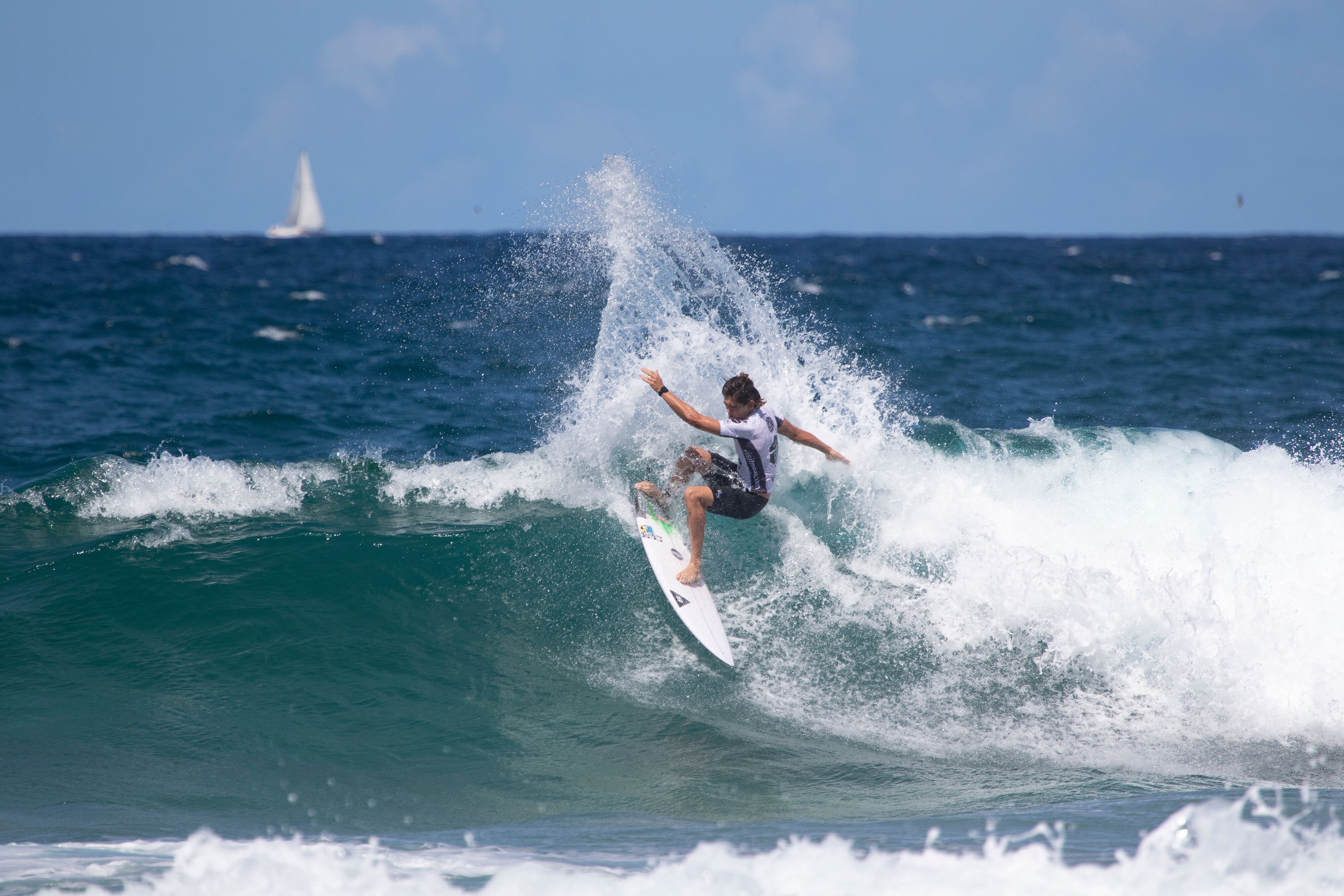 “I get nervous in heats if I don’t get a wave early so I just got busy as soon as I could,” deVault said. “Luckily the first few waves I took off on allowed a few turns so I got into a bit of a rhythm. There is definitely a bit of punch in the surf which I really think suits my style of surfing.”