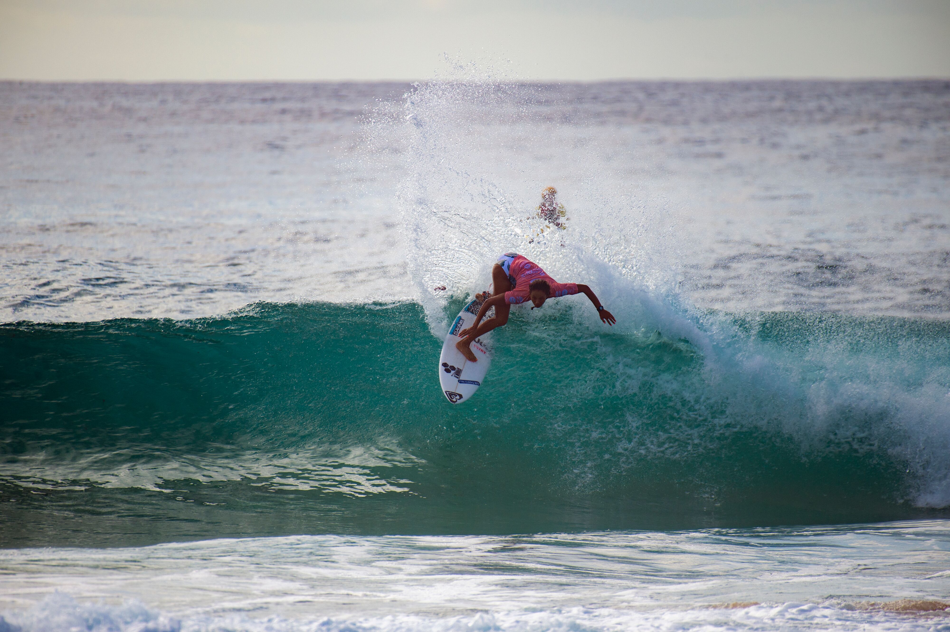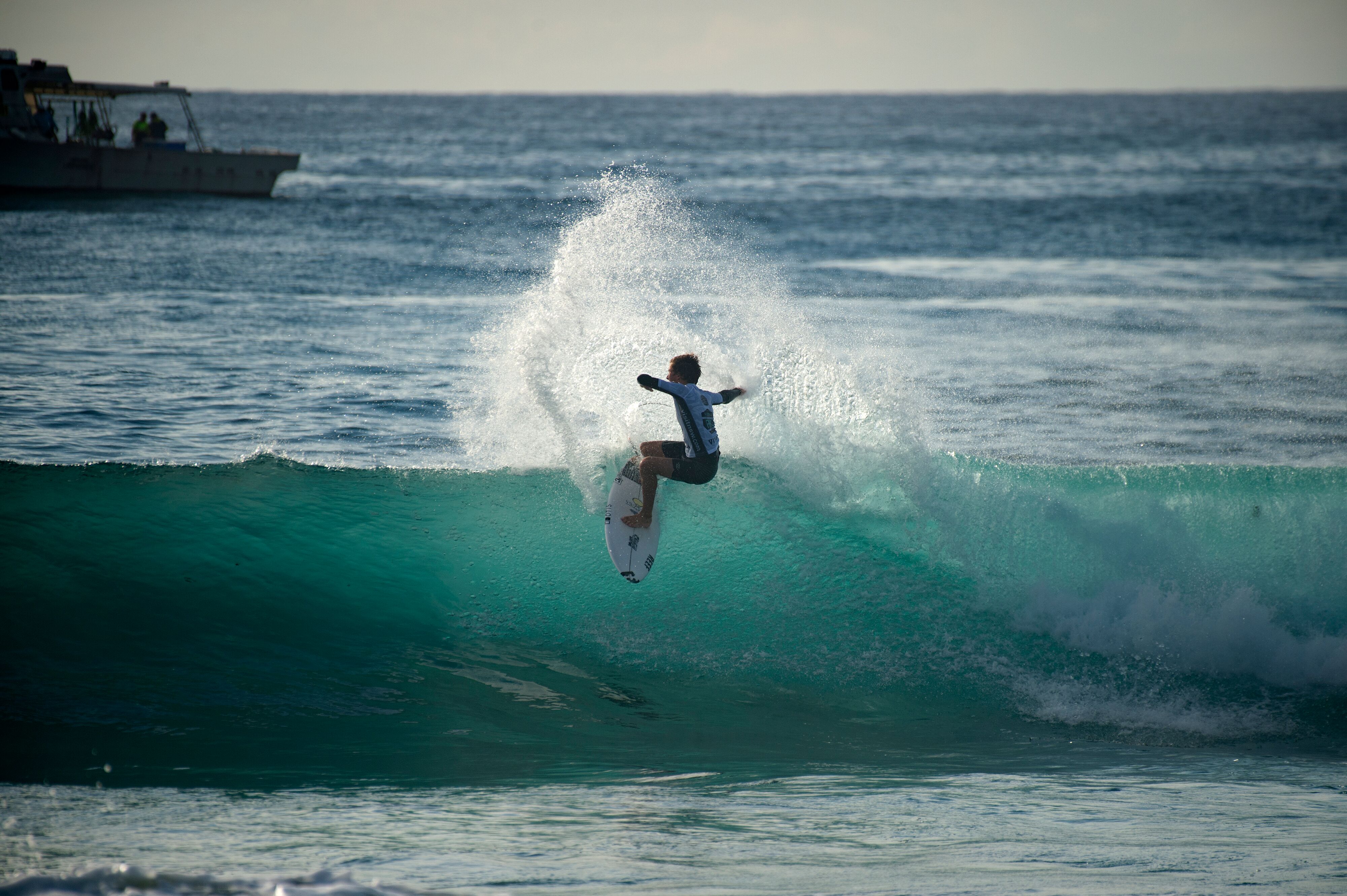 “I’ve been surfing Cyclone Oma all week just getting barreled and not doing turns so it was strange surfing smaller waves again today,” Parkinson said. “I never thought much about taking on the defending event winner as anyone in this contest is a threat. I find it easier to land airs than turns sometimes so I figured it would be easy to post scores in the air. If it feels right I’ll just keep doing that in round four.”