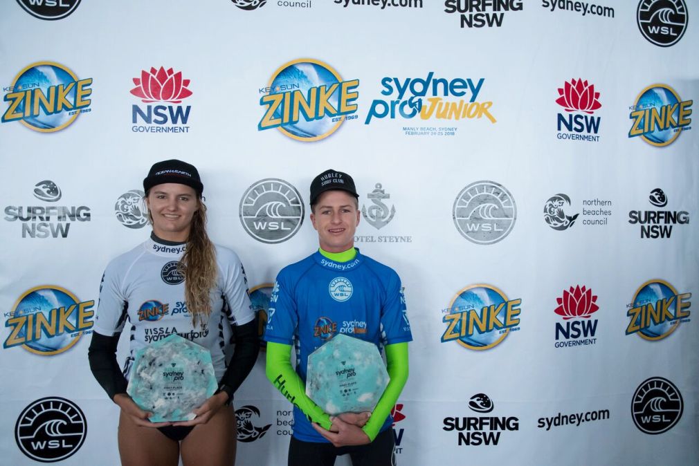 Caleb Tancred (Avoca, NSW) and Sophia Fulton (Mollymook, NSW) have taken top honours at the Key Sun Zinke Sydney Pro Junior following an action-packed day filled with high scores and tricky conditions.
