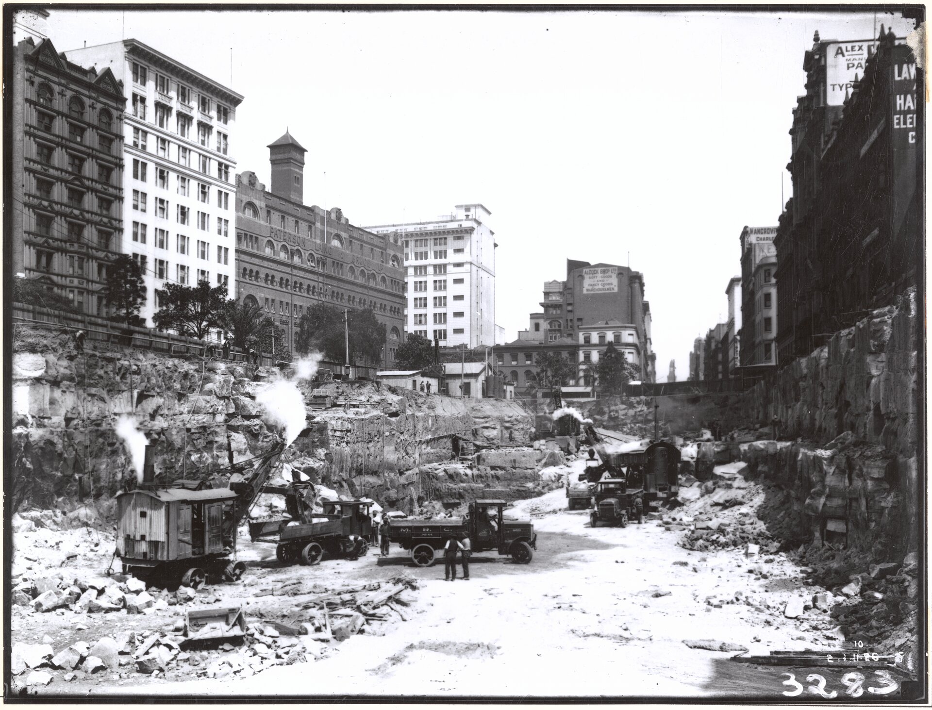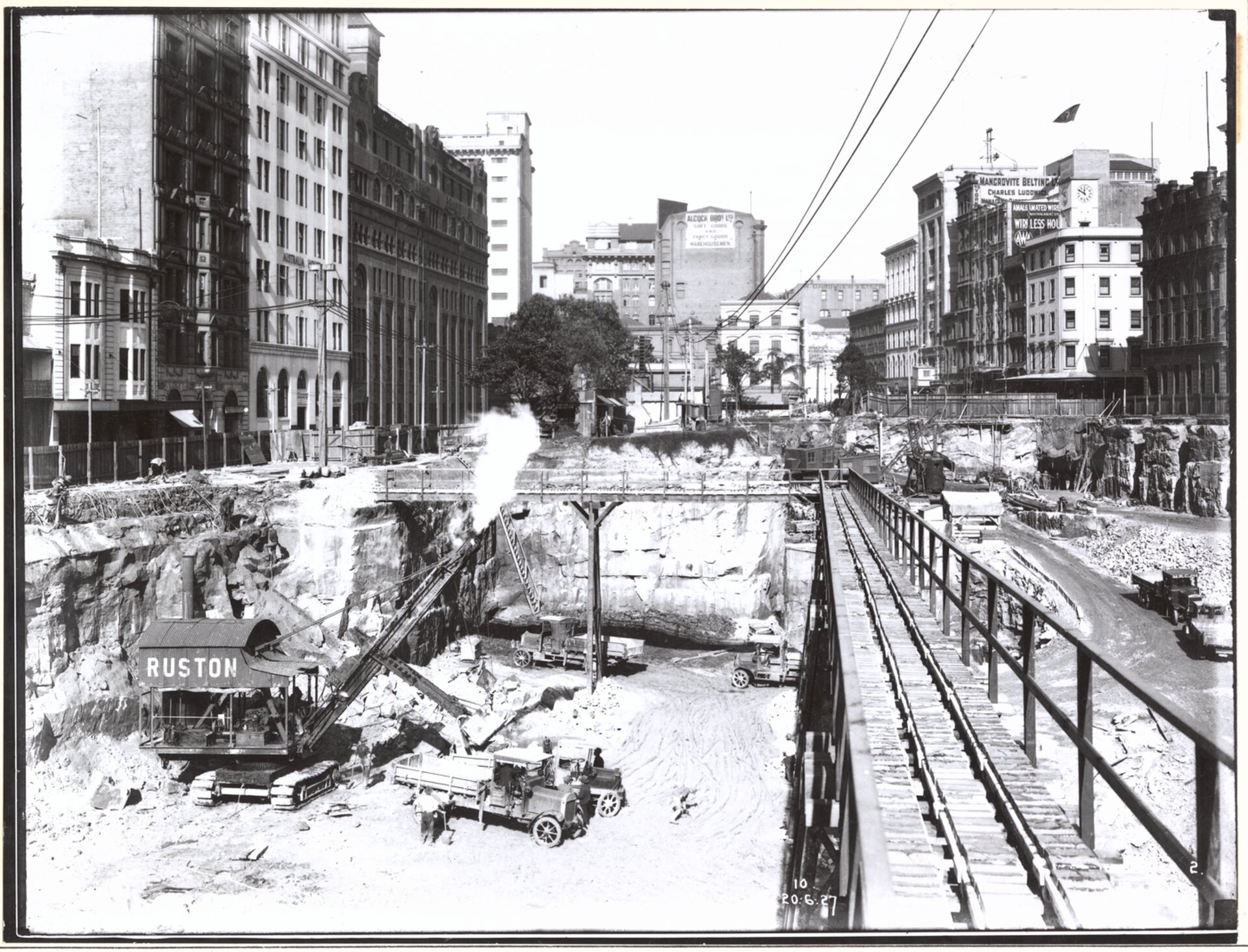 EXCAVATION FOR STATION, CITY CIRCLE, WYNYARD NSW 20-06-1927 to 20-06-1927 FL9266930 and FL9268143 courtesy NSW State Records