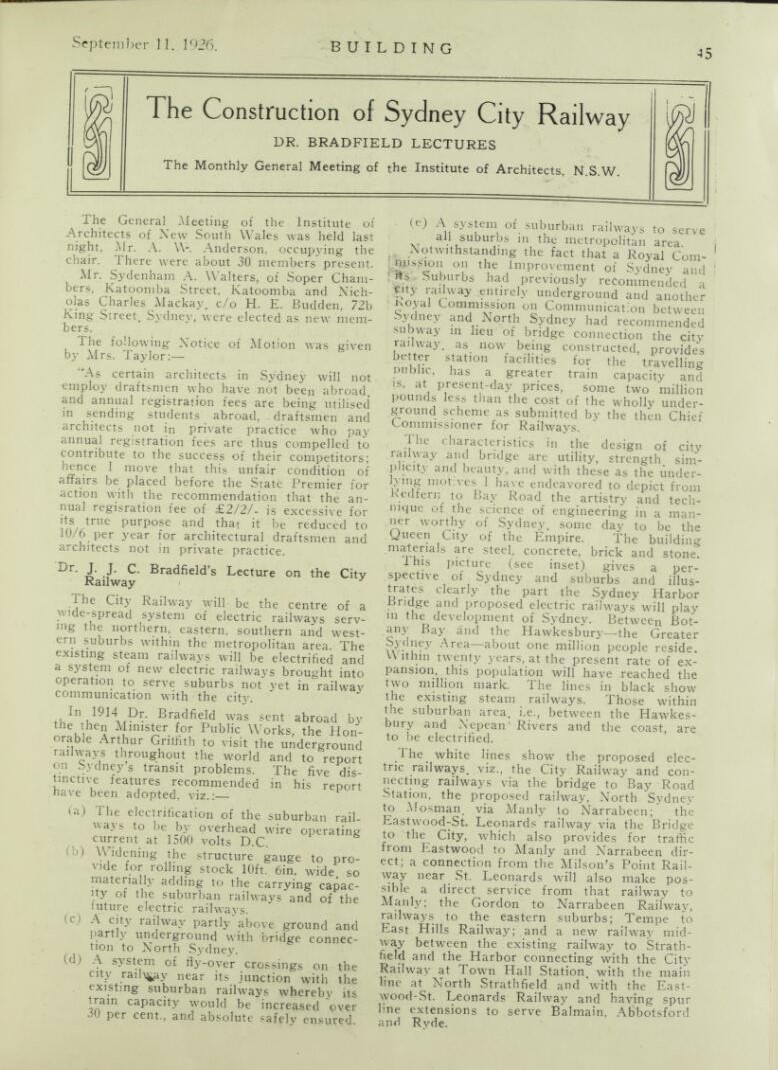 Above all from - Federated Builders' Association of Australia & Master Builders' Federation of Australia. (September 11, 1926). The Construction of Sydney City Railway DR. BRADFIELD LECTURES, Building : the magazine for the architect, builder, property owner and merchant Retrieved from http://nla.gov.au/nla.obj-310361291