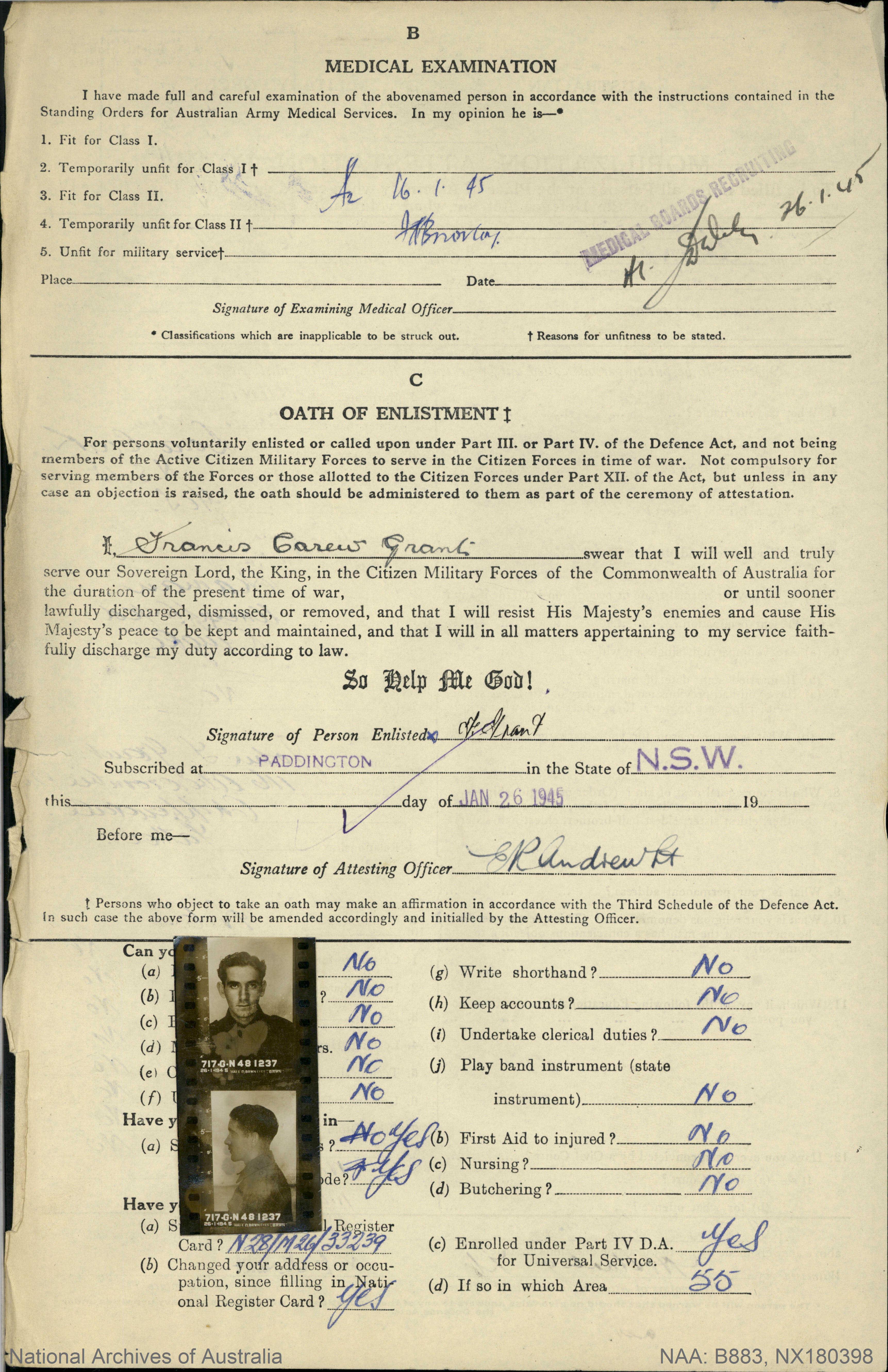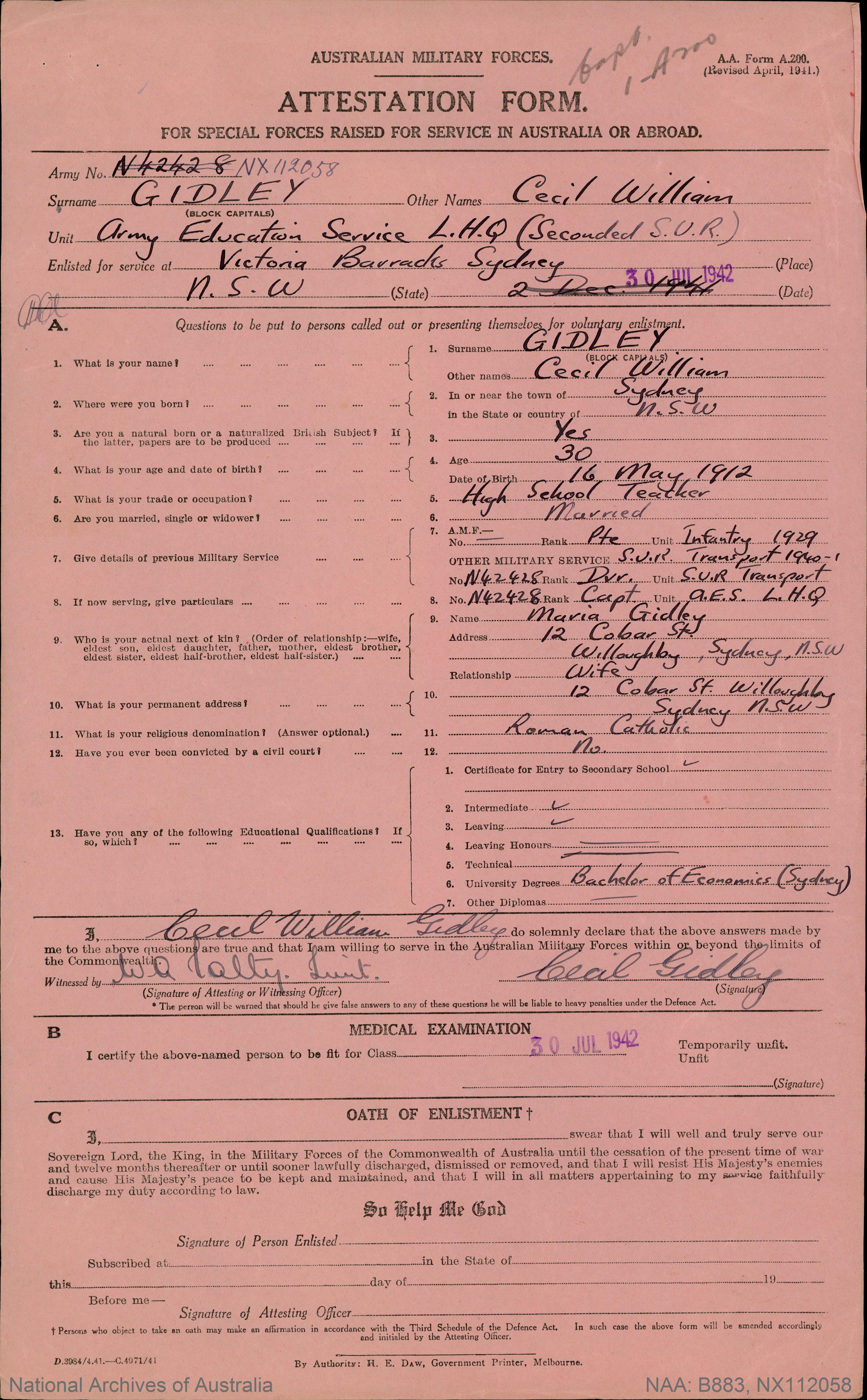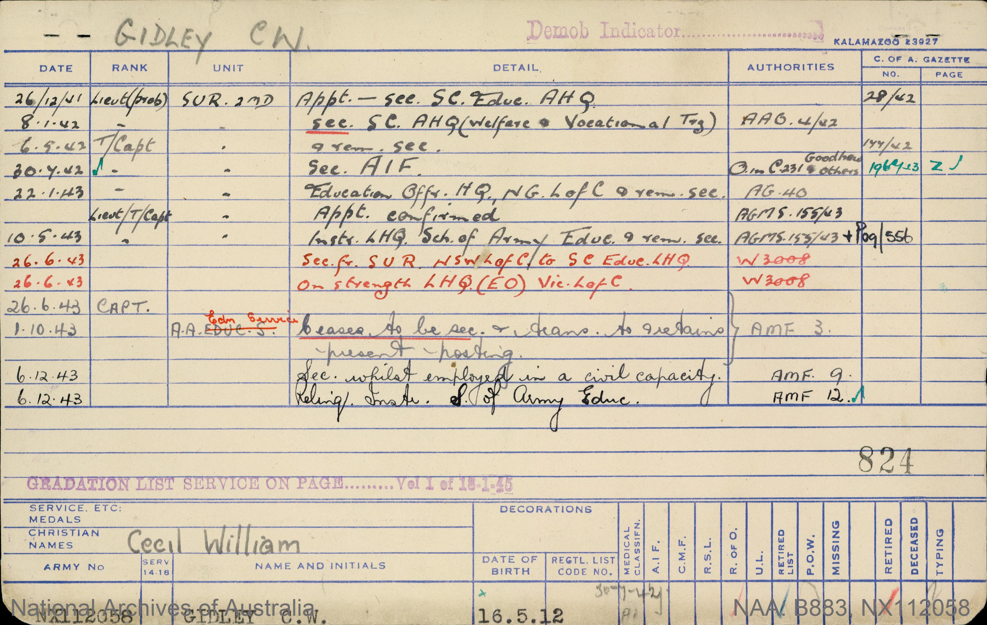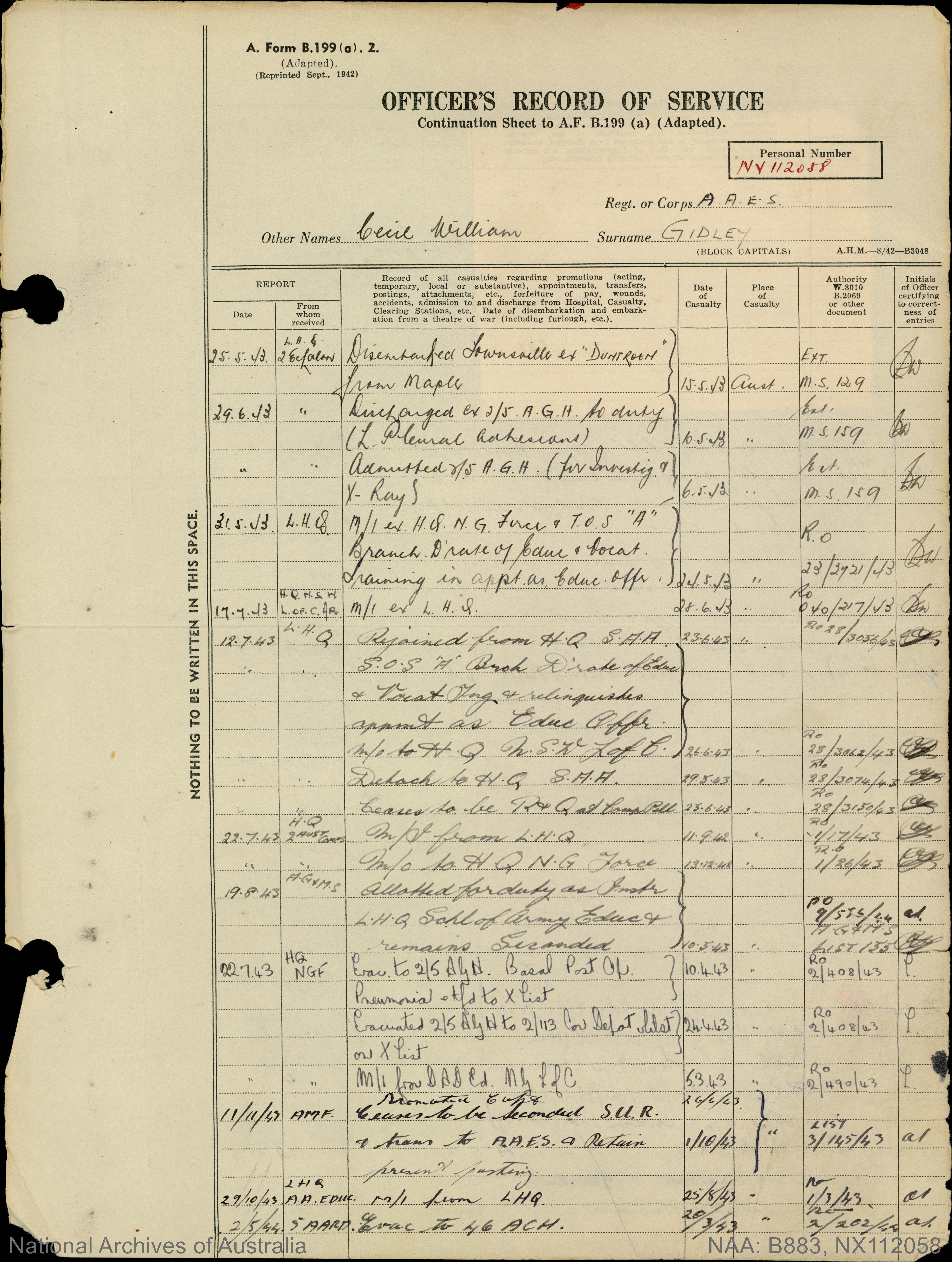 A few insights from Mr. Gidley's War Service Records, courtesy of the National Archives of Australia: