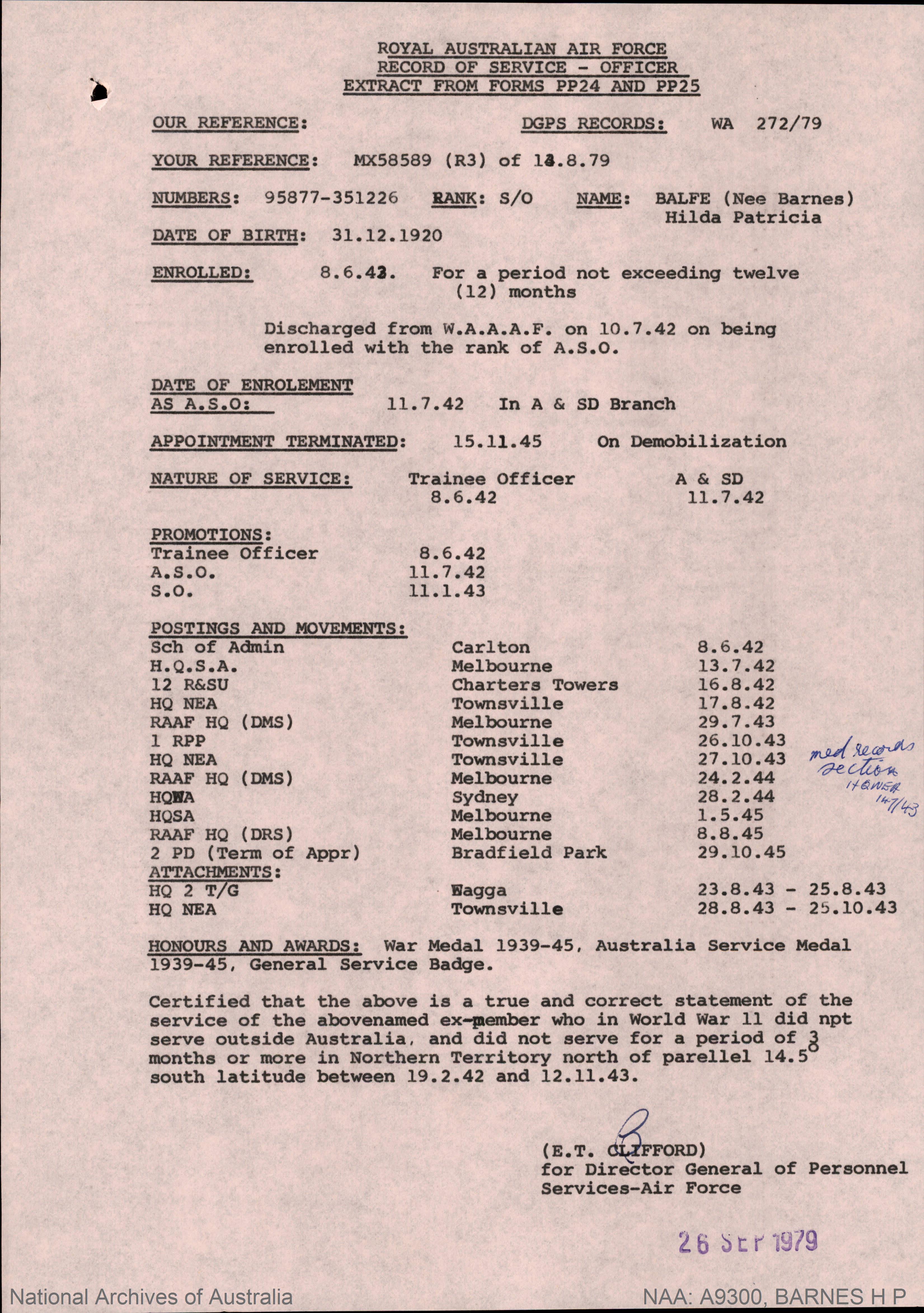 Hilda married in 1948, unsurprisingly, her husband was a RAAF man:
