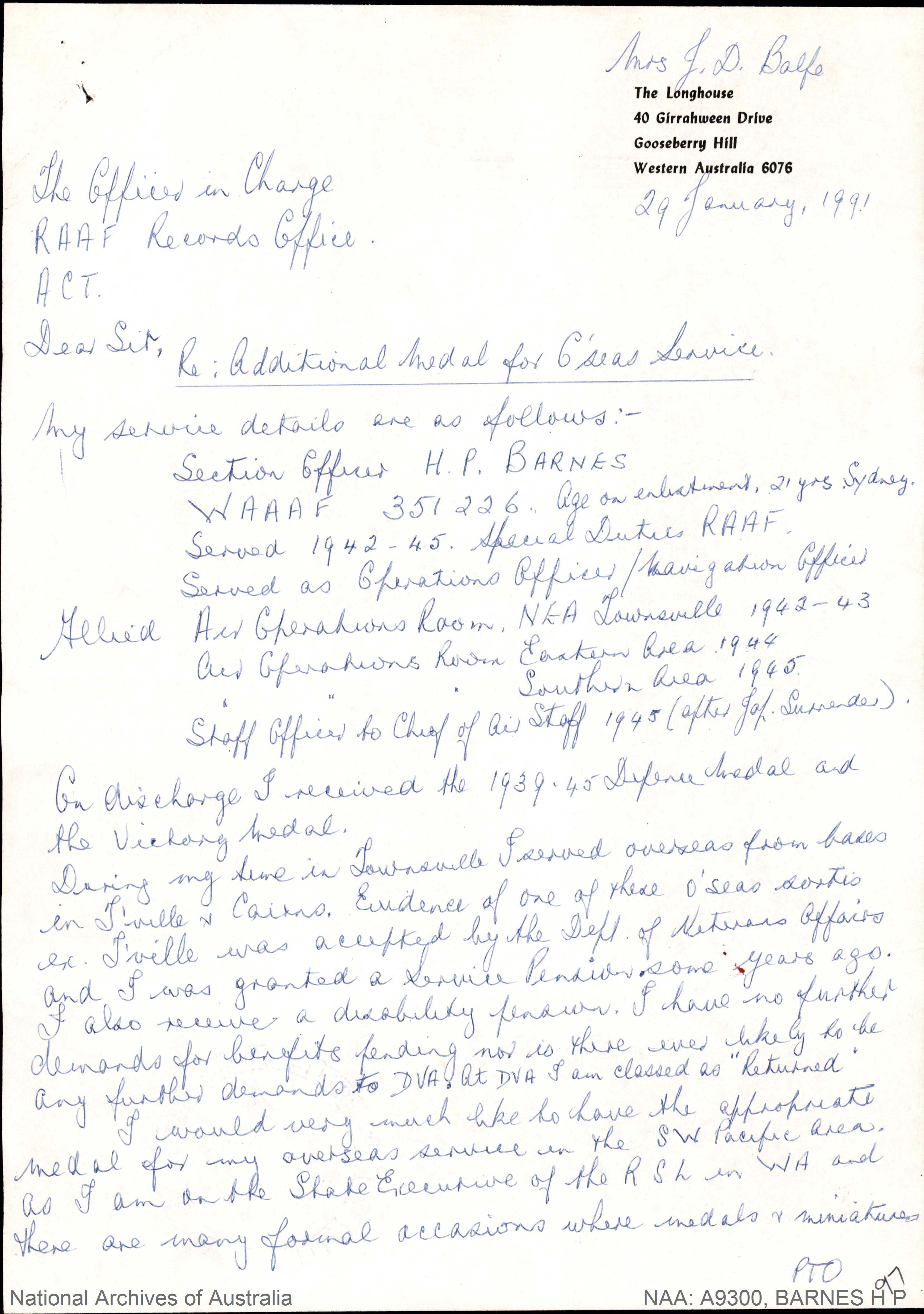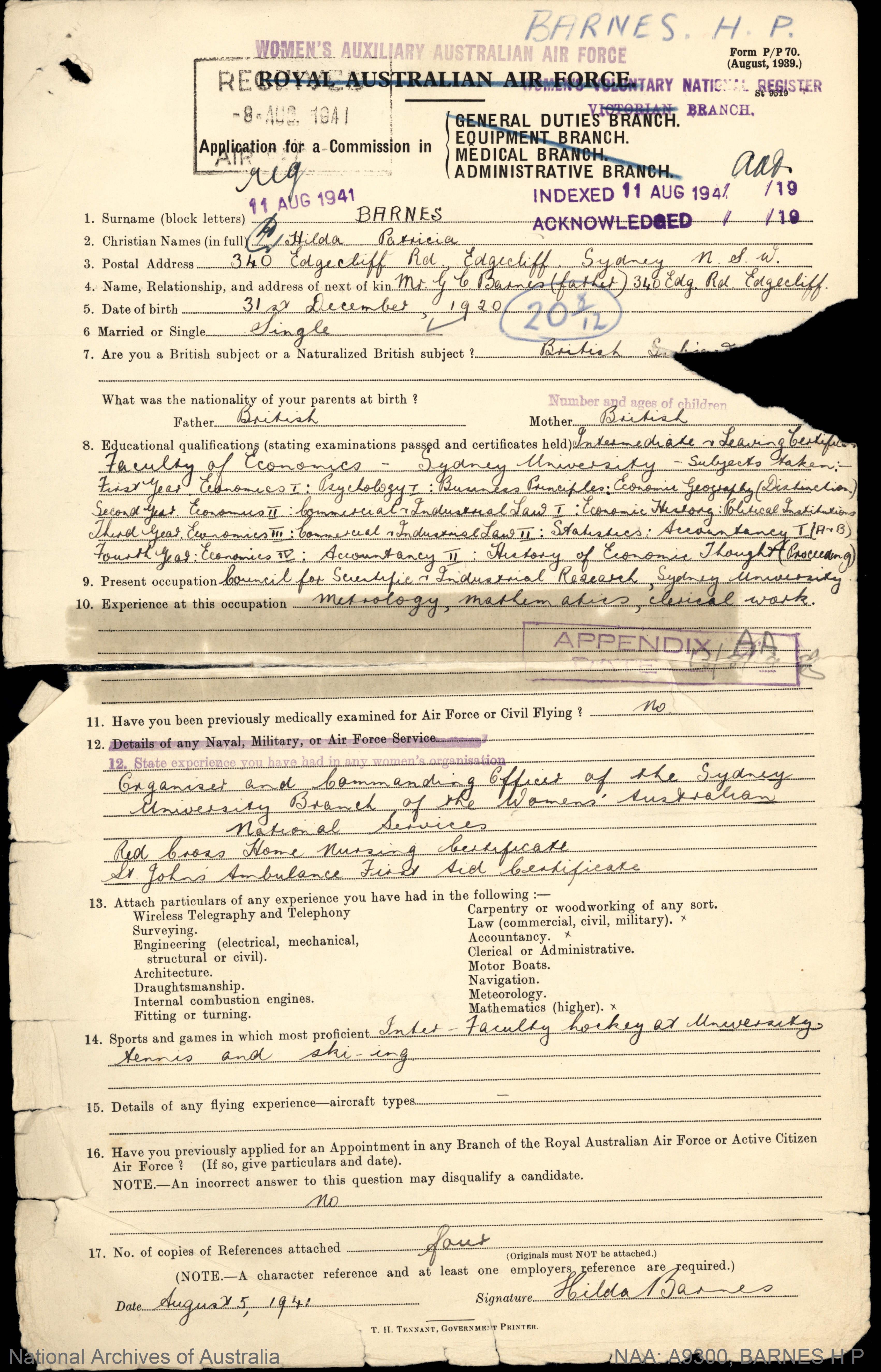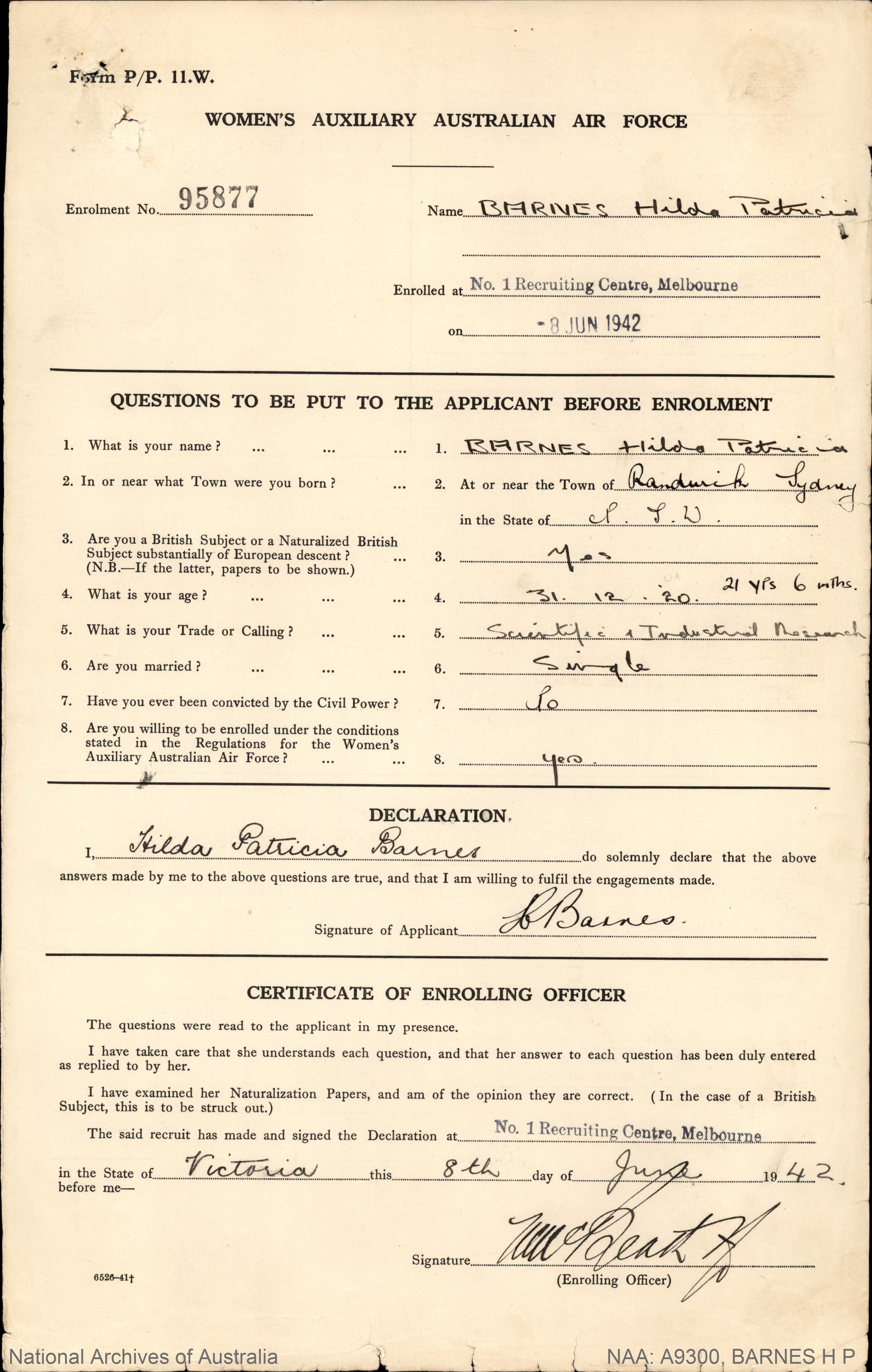 Hilda Patricia Barnes – born December 31 1920. Birth: BARNES HILDA P 6431/1921 to GERARD C and AIMEE registered at RANDWICK