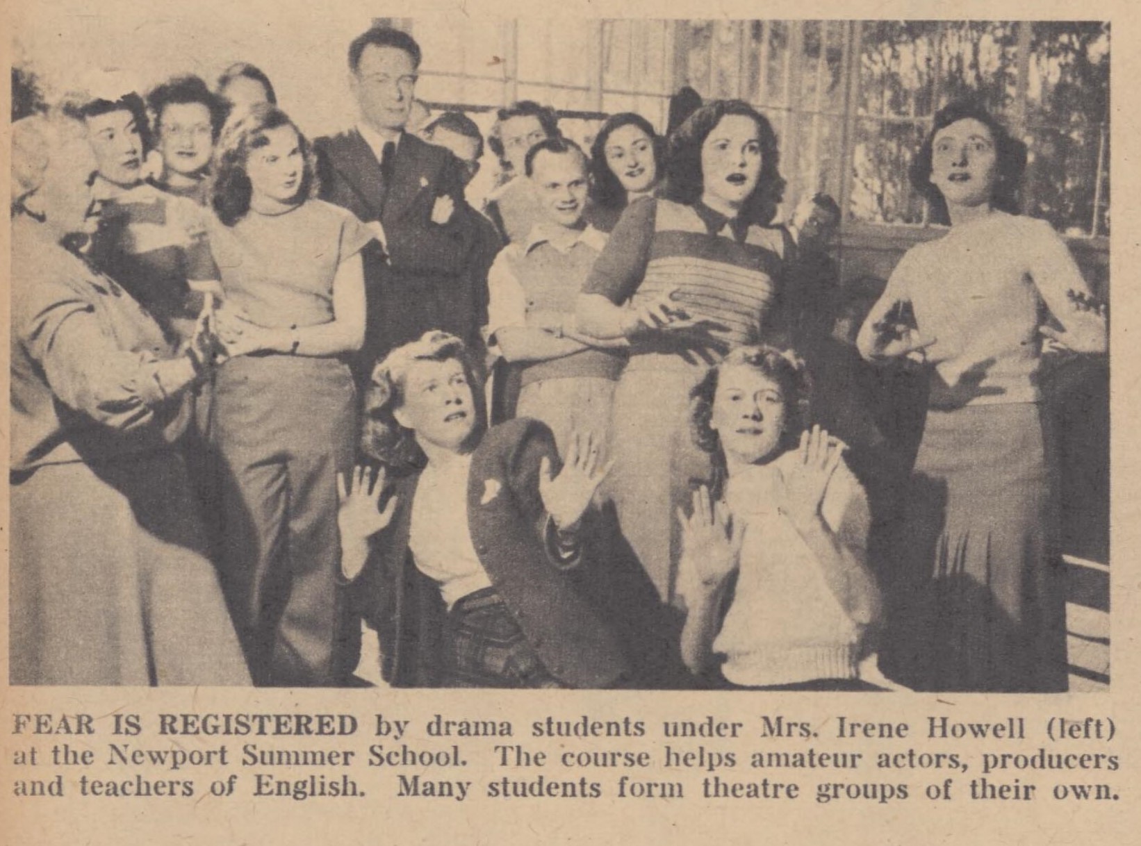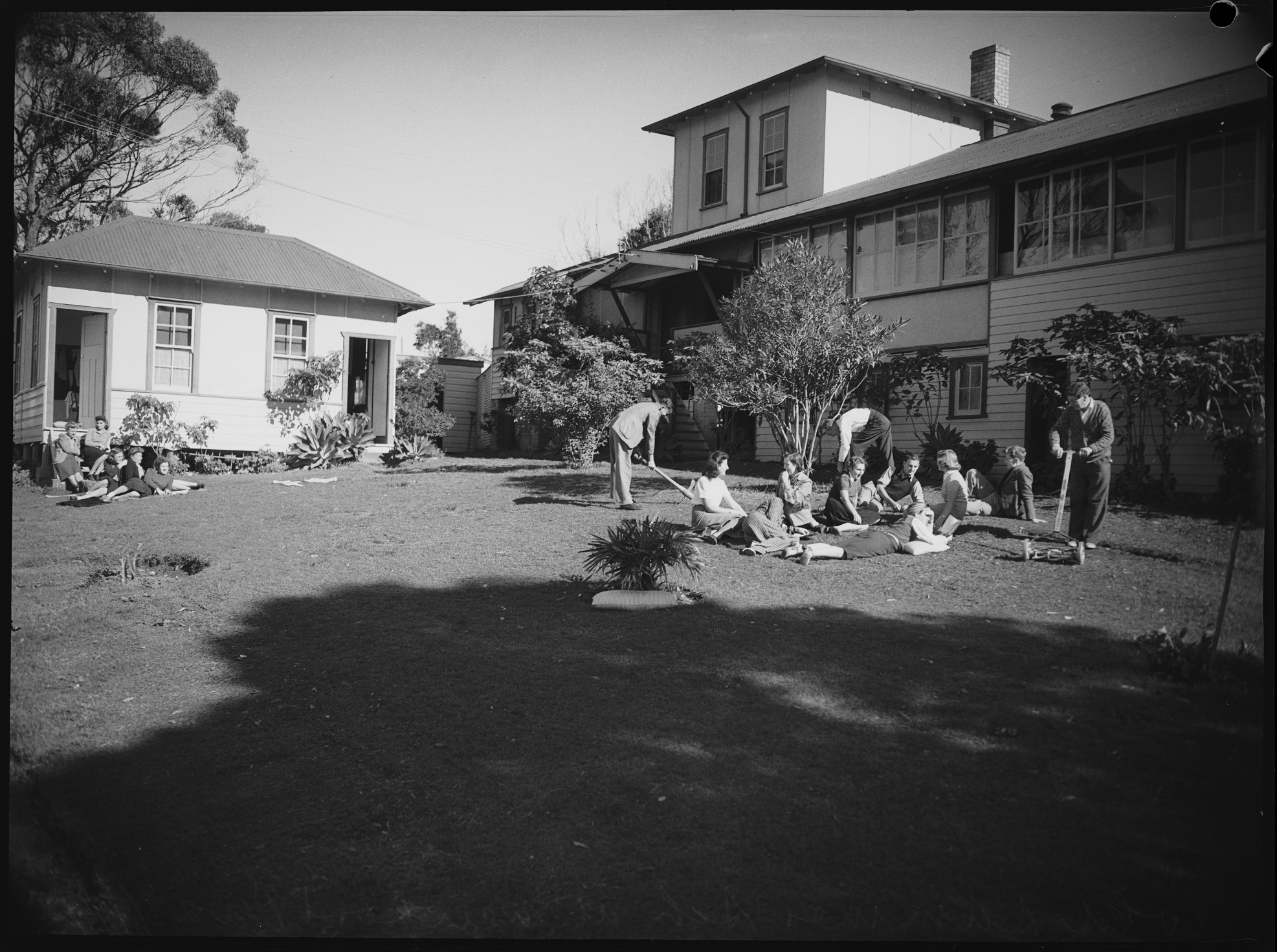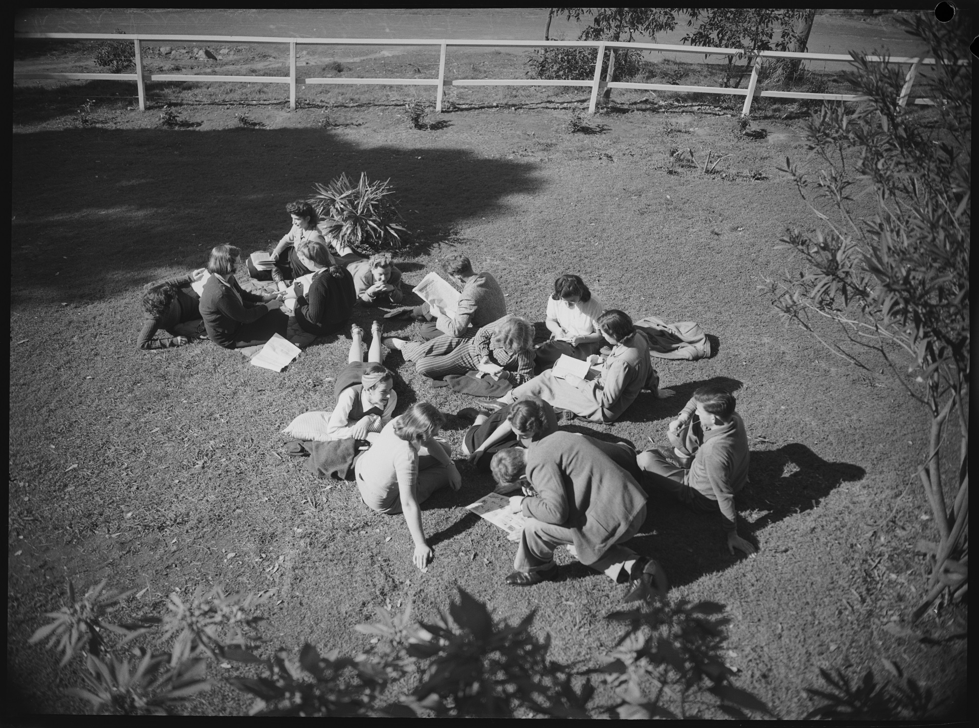 Back garden drama tuition at the WEA summer school, Newport 1949 + front verandah, courtesy National Library of Australia [PIX, Vol. 23 No. 13 (24 September 1949), p24, via Trove]