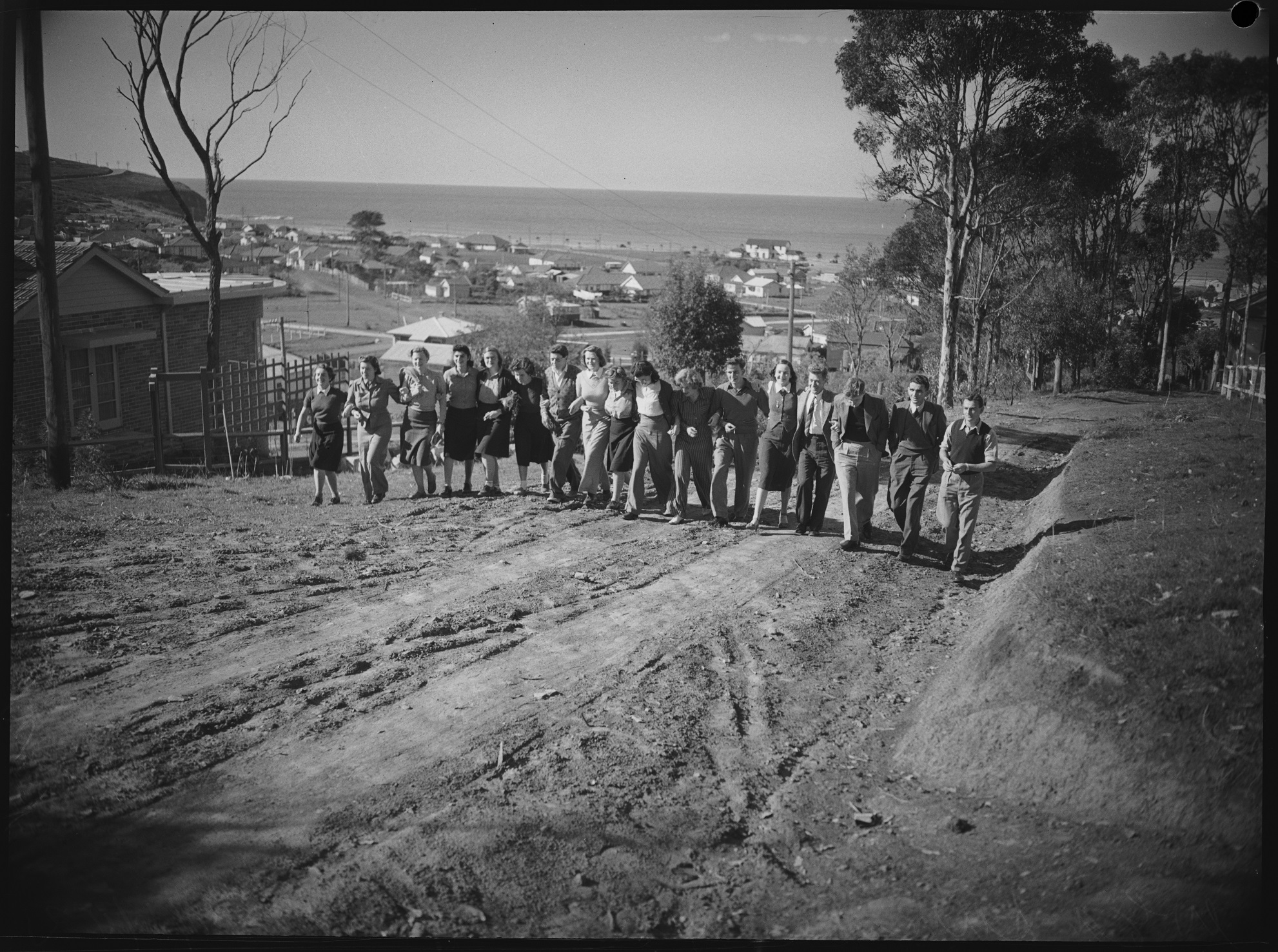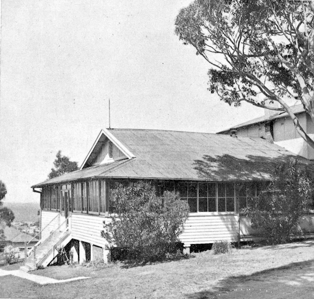 The W.E.A. Summer School Building is situated on the crest of a rise sloping gently from the southern end of Newport Beach. Bushrangers' Hill, to the south-east, breaks the force of the southerlies, and on the west another bush-covered hill shelters us from the hot westerlies. The house is built to face the north-east, with a magnificent view of the beach on one side, and bush and hill on the other. It is open to the cool northeast breeze, making the hottest days bearable.