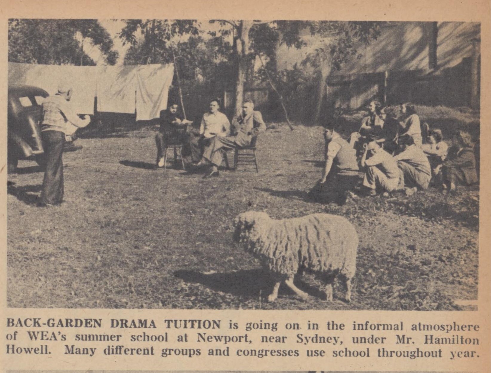 The W.E.A. has just completed a three weeks summer school in the new camping home at Newport. Members of the association have attended from various parts of the State, including Newcastle. The 'school' equipment, which Is costing the association upwards of £1700, is pleasantly situated among the trees on the slope overlooking the ocean beach. The time has been passed with an agree able mixture of holiday frolic and mental stimulation.
