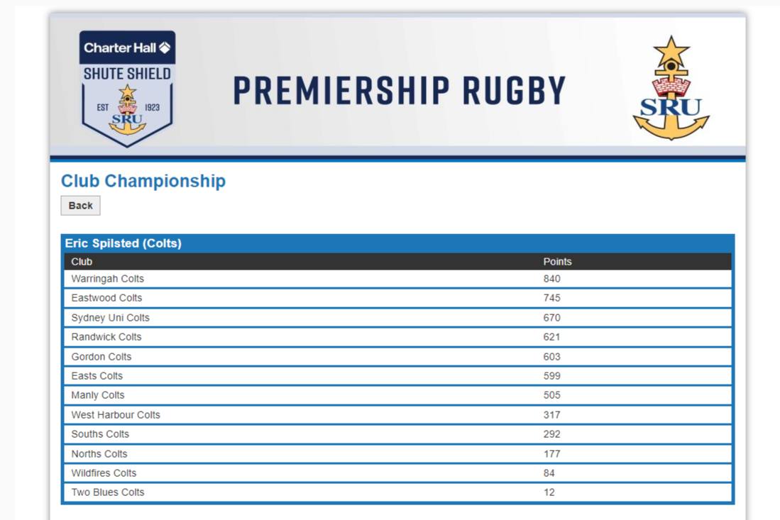 Warringah Colts Points - after Round 18, August 5, 2023: HERE