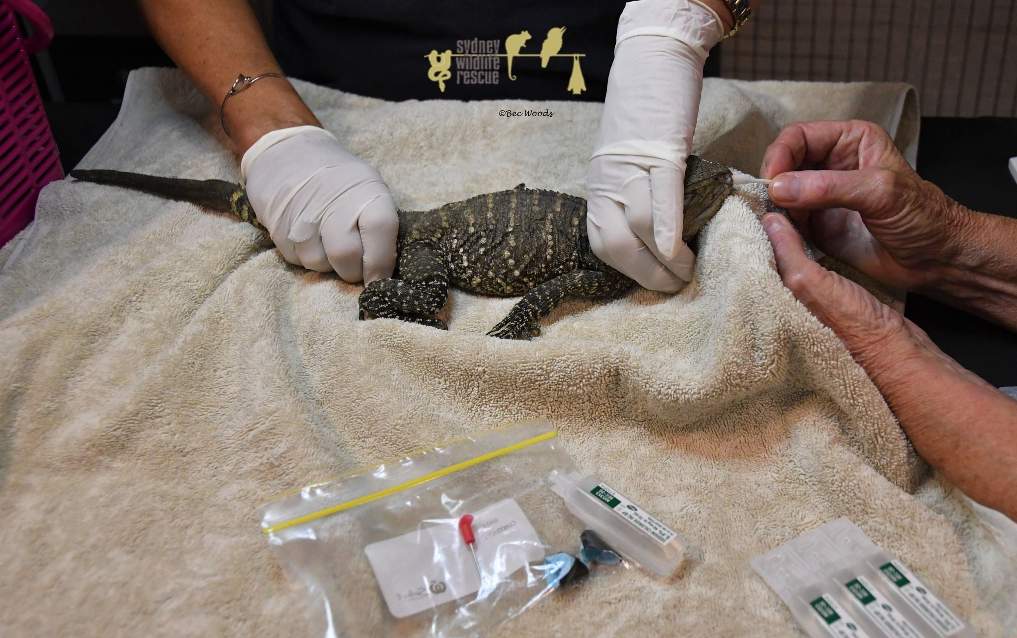 Readers will recall on Australia Day, Sydney Wildlife’s rescue line received a call from a distressed member of the public letting us know that a Water Dragon in Shearwater Estate ponds in Warriewood appeared to have pins in it.