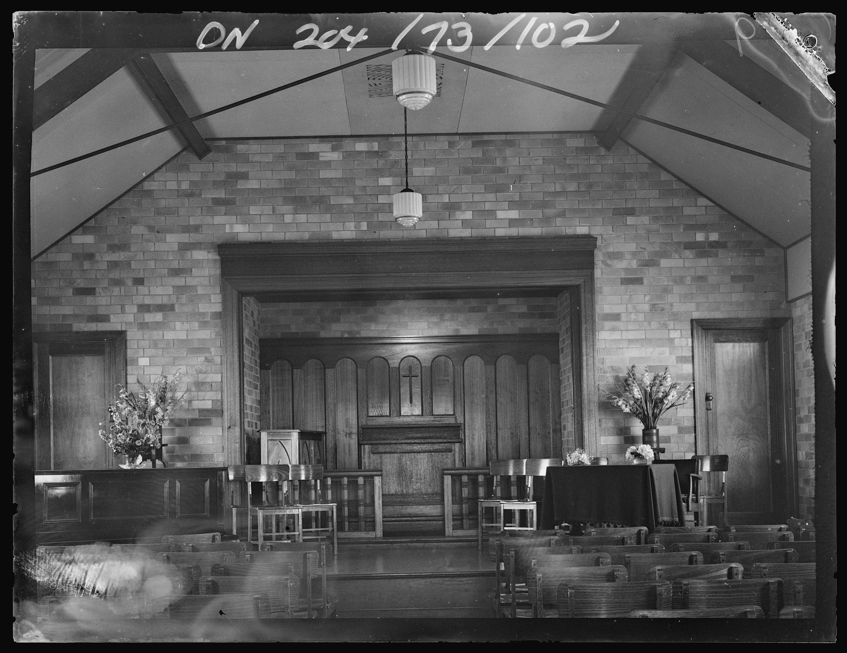 Central Methodist Mission aged men's home and new chapel, Narrabeen, 7 December 1940. Matron Hamilton with G. Taylor aged 81, S. White 81, J. Taylor 83, Mr Hamilton over 80, A.Russell 80. Central Methodist Mission aged men's home and new chapel, Narrabeen, 7 December 1940. Interior of the chapel Items: SLNSW_FL20815991 to SLNSW_FL20815997, courtesy Mitchell Library, State Library of New South Wales: