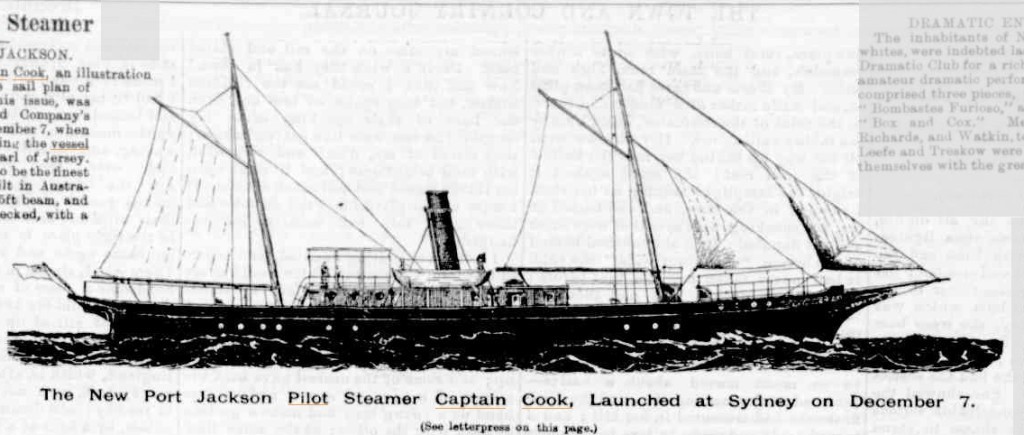 In 1875 Mort's Dock designed and built the first pilot steamer, Captain Cook, a vessel 123ft 6in long, of 287 tons. She did good service for some 16 years, and, in 1891, the firm secured the order for the second Captain Cook, 156ft long and of 396tons. This familiar vessel has been in continual service since. She was commissioned in 1893, and is still running. That she should be doing so speaks well for Australian shipbuilding and workman-ship. After 45 years' continuous service she will go out of commission this year, as Mort's Dock has again secured an order in competition to build a third Captain Cook. This craft is now under construction, and is expected to be completed this year. The length had been again increased, and is 170ft, with a tonnage of 450. SHIPBUILDING INDUSTRY IN AUSTRALIA. (1938, March 28).The Sydney Morning Herald (NSW : 1842 - 1954), p. 7 Supplement: Engineering Supplement. Retrieved from http://nla.gov.au/nla.news-article17452552