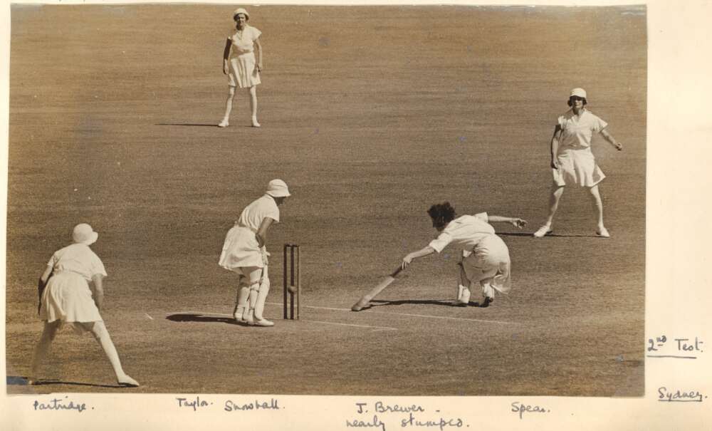 Women's Cricket Association. (1935). Dramatic action shot of the 2nd women's test match in Sydney, NSW versus England, 1935 Retrieved from http://nla.gov.au/nla.obj-148697048