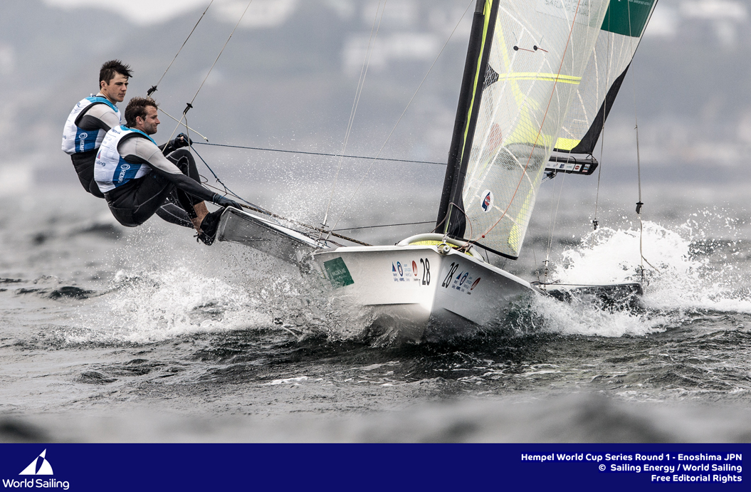 World Cup Series Enoshima 2019 Joel Turner front Tom Needham helm - picture credit, World Sailing - Sailing Energy