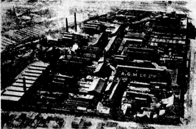 Damage estimated at £100,000 was caused by a lire, which destroyed a large section of the works of the Australian Glass Manufacturers Co., Ltd., at Waterloo, yesterday. The conflagration was watched by thousands of people, who saw flames 100 feet high roll out of the burning building, and blazing material hurled skyward by frequent explosions.