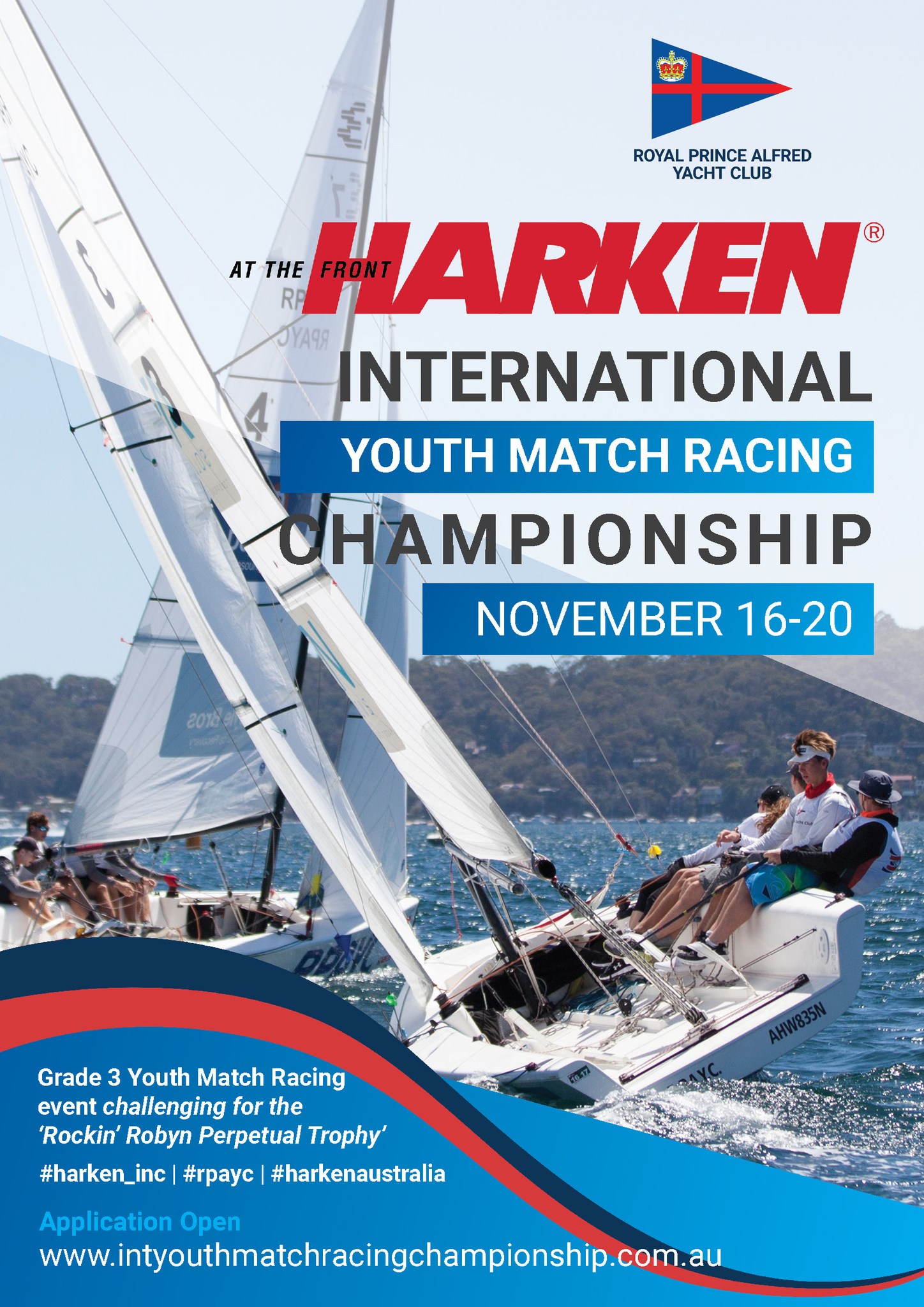 International Youth Match Racing is set to return to the waters of Lower Pittwater this November, with host club and Organising Authority the Royal Prince Alfred Yacht Club, now accepting applications for invitations, to the 2022 HARKEN International Youth Match Racing Championship.