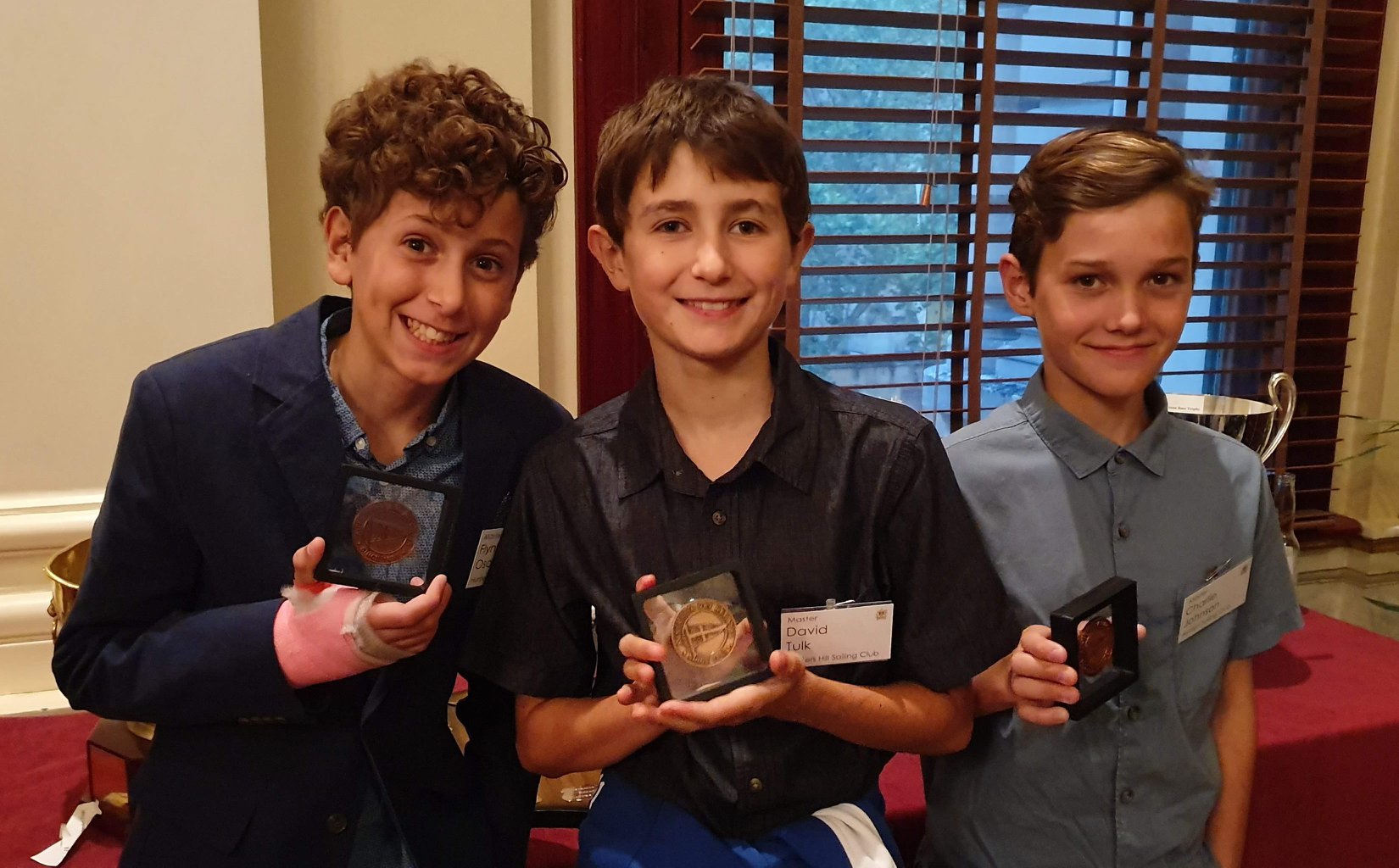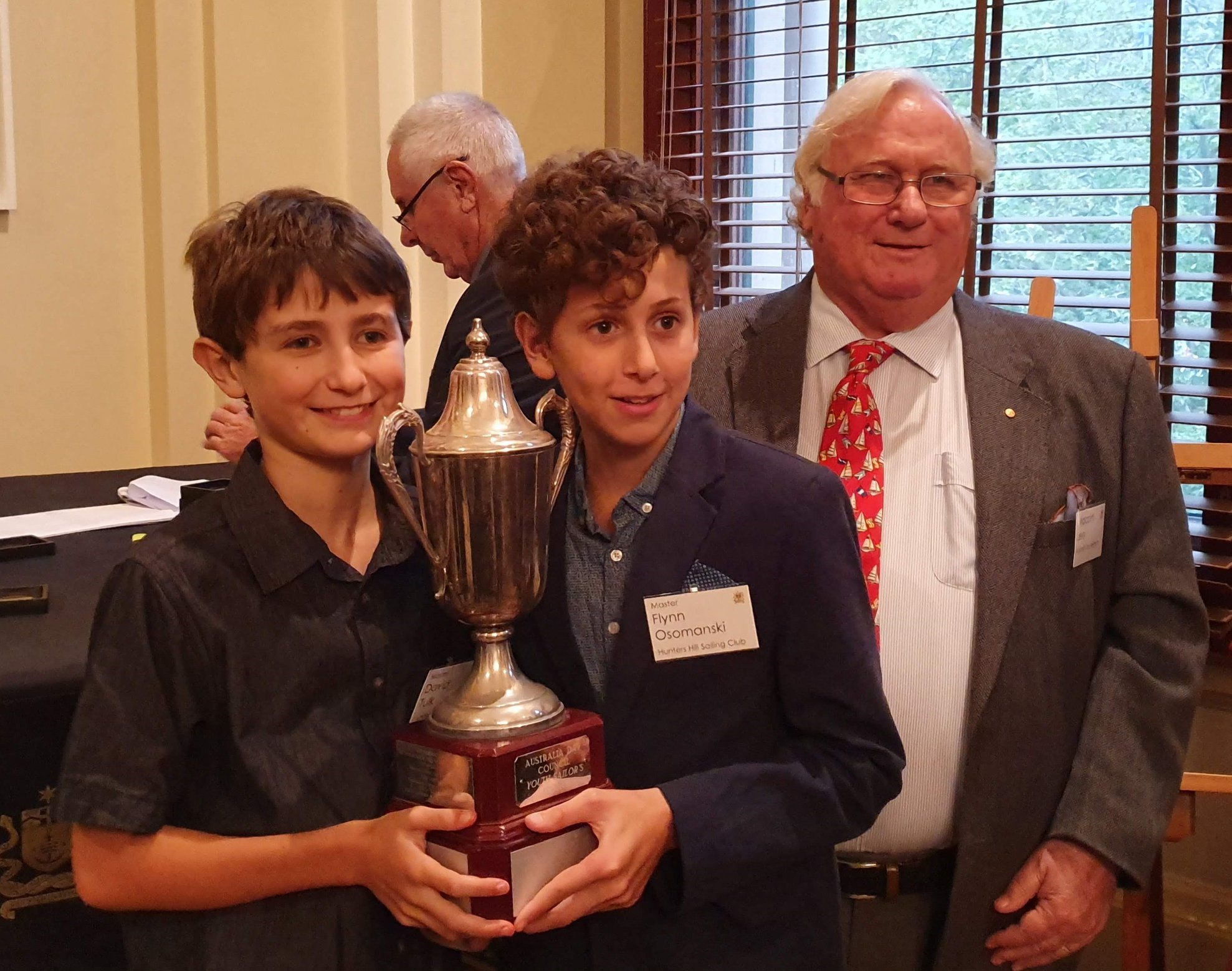 David and Flynn collected a second medal for the Hunters Hill division, having sailed a charity event at Hunters Hill Sailing Club the following day without realising it qualified as their Australia Day Regatta. The big surprise of the evening was the last trophy awarded – each year since the 1990’s the Australia Day Regatta Committee review the list of winners and selected someone for the perpetual Youth Trophy. Recognising the uniqueness of winning two divisions in the same year, David and Flynn in Waverunner were honoured to be this year’s recipients.