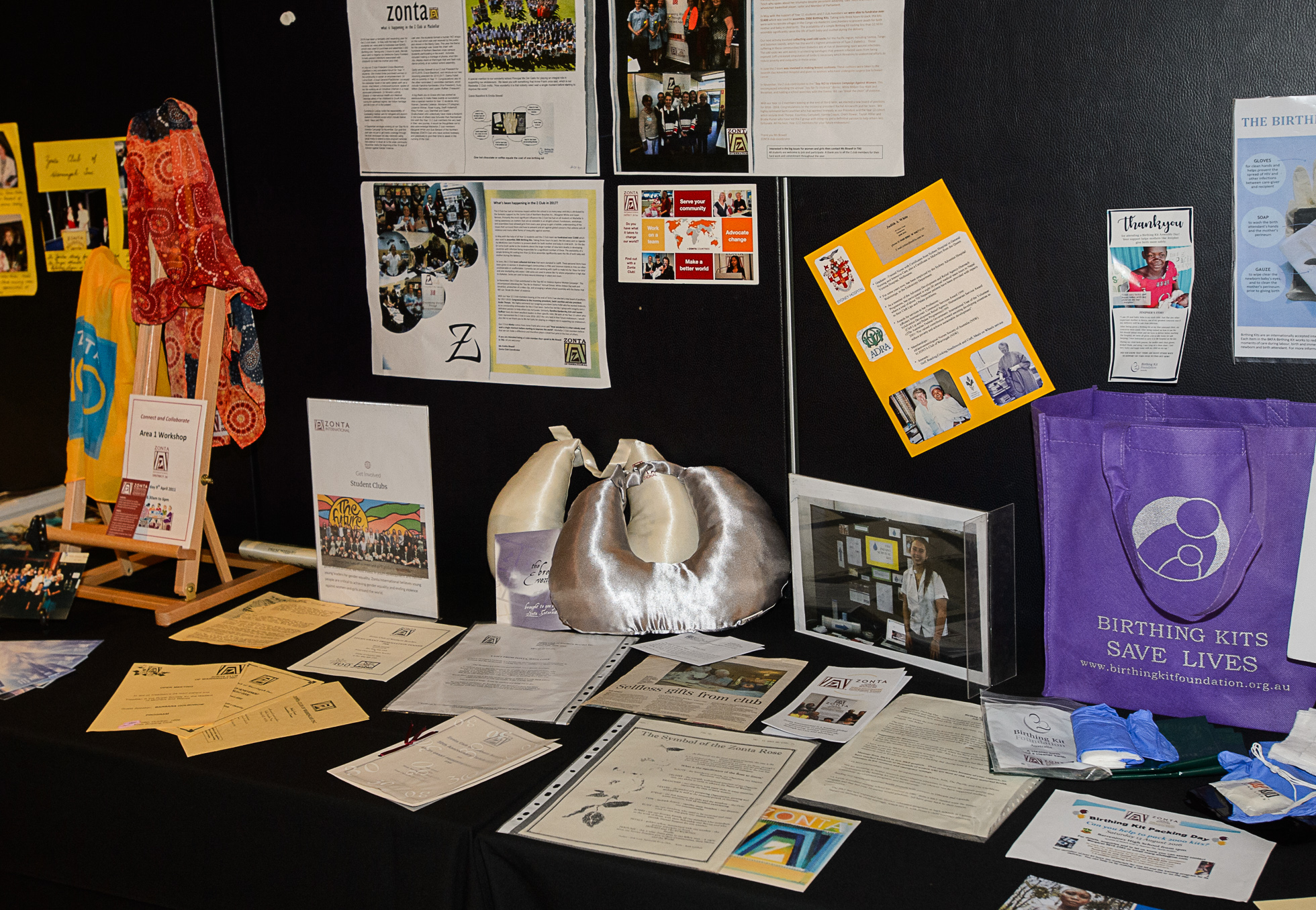 Local schools and the Z clubs have had Clean Birthing Kit packing days. Our club and the students fund-raise to buy the contents, each little pack containing a 1 m square of black plastic, sterile blade, plastic gloves , soap and gauze. The $5 it costs to produce these kits, which are sent to areas of the world where women give birth in unsanitary conditions, also contributes to the training of local birth attendants.