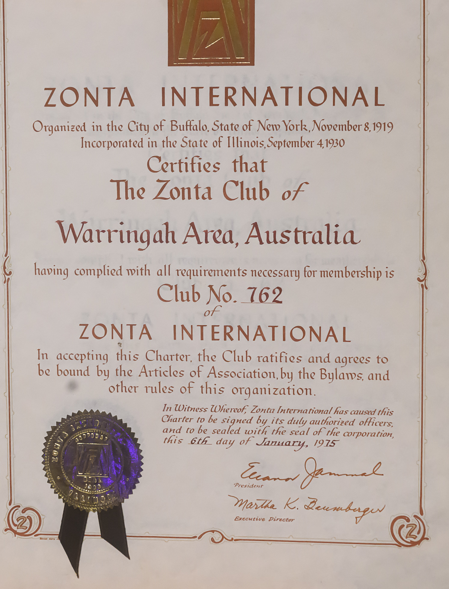 The Zonta Club of the Northern Beaches was charted as the Zonta Club of Warringah in 1975 with 14 Charter Members when Maggie Vaile, a member of Sydney Zonta Club and career journalist who lived in Rayner Road at Whale Beach, invited local business women to join her in a local Club. Sydney Zonta Club became the new club’s sponsor, organiser and mentor. Maggie Vaile was the first President, and the Guest of Honour at the Charter was Lady Helen Cutler, the wife of the then Governor of NSW.