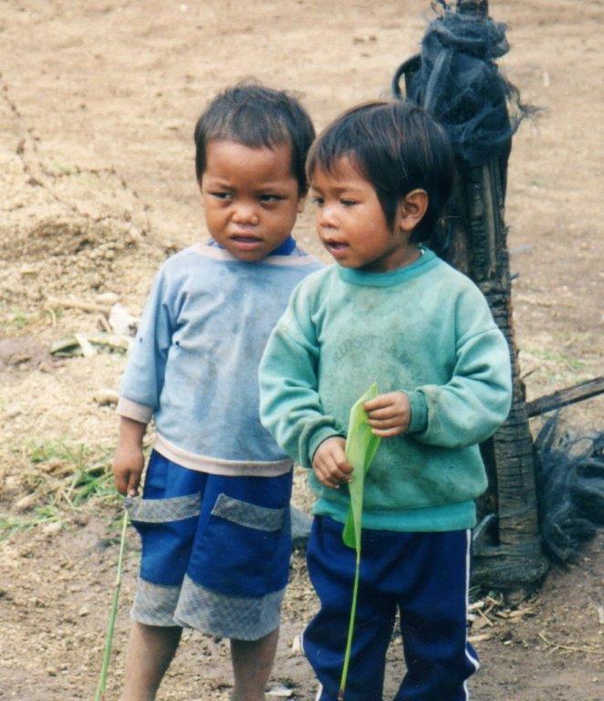 Boys in Khop Village, Vietnam, 2002. Note boy carrying his brother on his back.