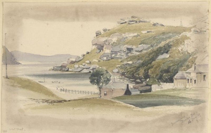 Barrenjuey [i.e. Barrenjoey], Broken Bay 1869 Jan. 16 by George Penkivil Slade. nla.pic-an6454687, courtesy National Library of Australia.