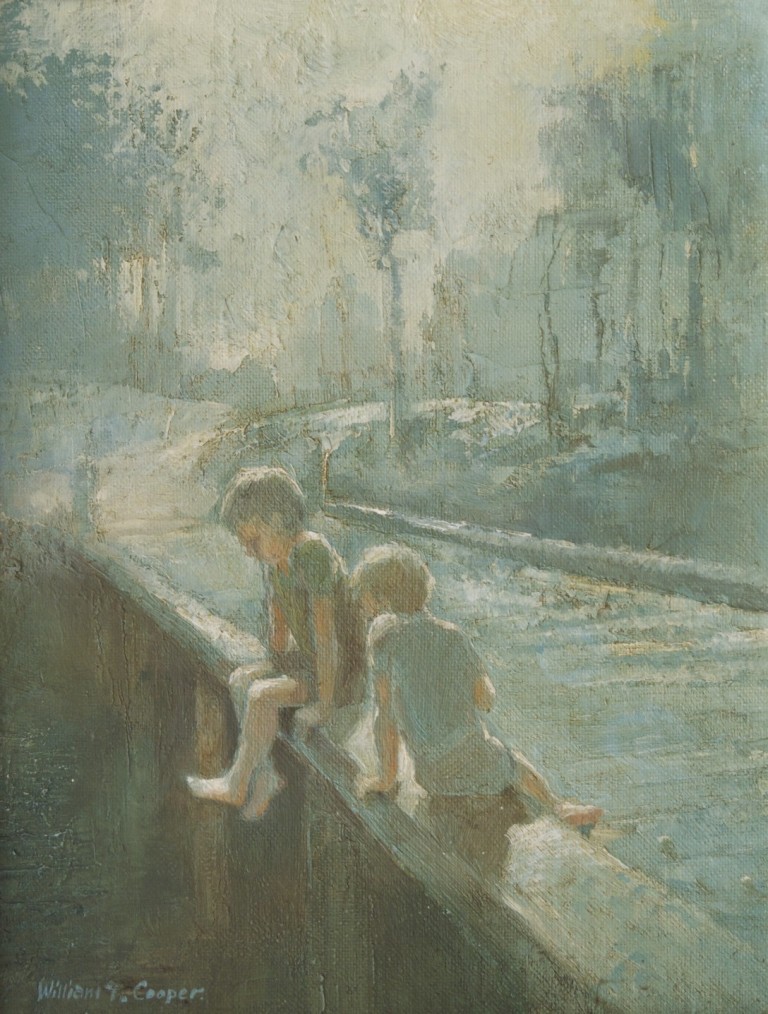 Watching the Fish, early 1980's, opil, 23.5x18.5cm, courtesy Sue Rabboit, page 265. of An Eye for Nature: The Life and Art of William T. Cooper.