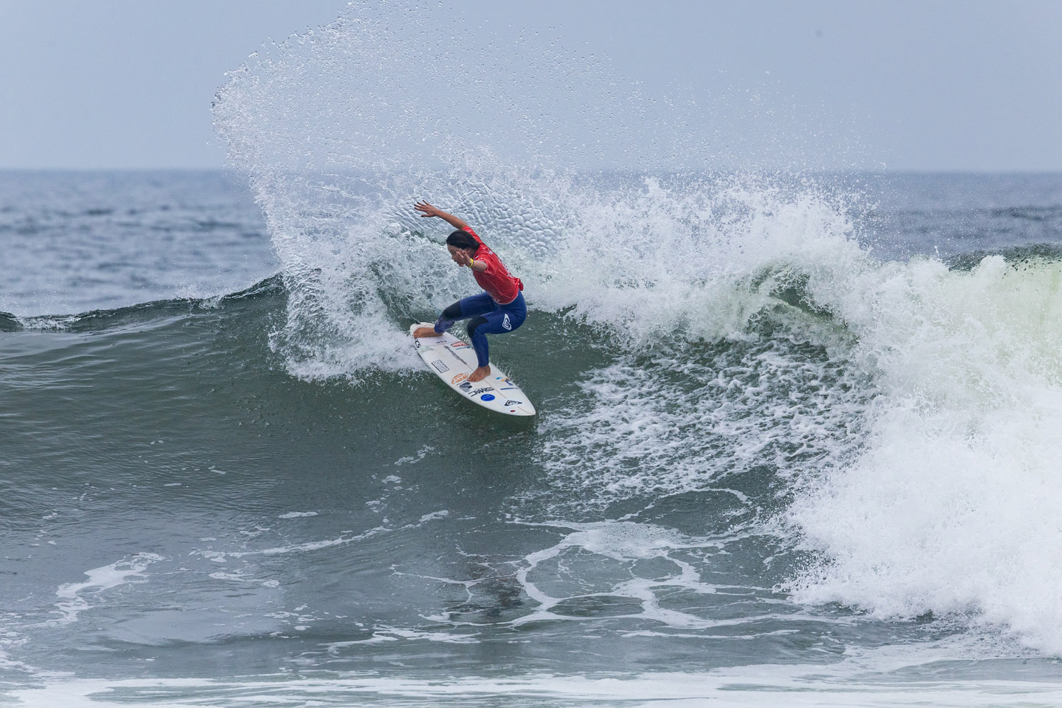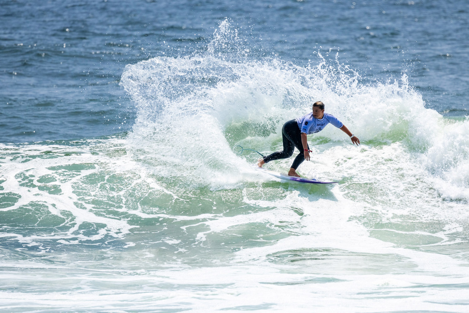 Staying active in a slow ocean, Taro Matsuno (JPN) built across the duration of his U/16 boys heat with his speedy, aggressive backhand building momentum throughout. A 7.43 was joined by an 8.50 after the 15-year-old closed out a three-turn combo with an extremely critical end section hit. Matsuno’s 15.93 heat total was the highest of boy’s competition for the day, as was his single-wave score. Competing in his first ISA event, Matsuno was excited to move deeper in the draw.