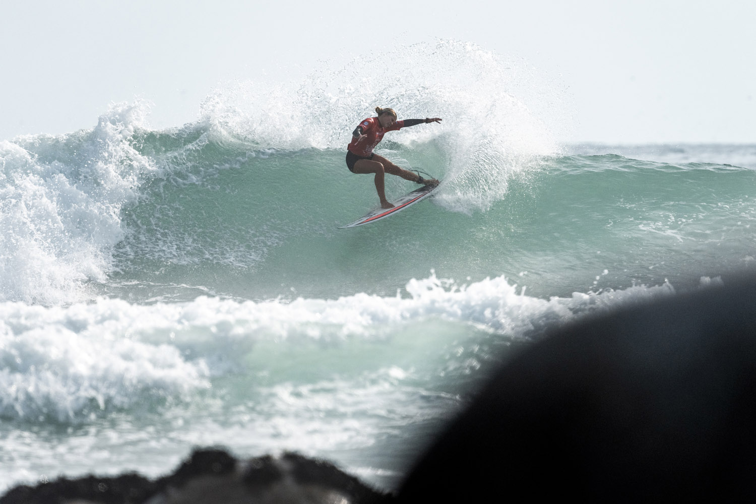“All those girls are so good, I knew that going in, but you just have to understand that in surfing contests in every heat there can be good names, bad names, or whatever, but no matter what, you can never know what’s going to happen,” Mons said. “Anything could happen, like a 20-minute lull, or someone you’ve never heard of just drops a 9, or someone who’s insane chokes, or whatever. And I know that that can happen to me too. So just kind of staying humble, just being super energetic and assertive in heats and giving it all you can, knowing that you can’t really control what the other girls are doing, but you can try your best and control what you can control.”