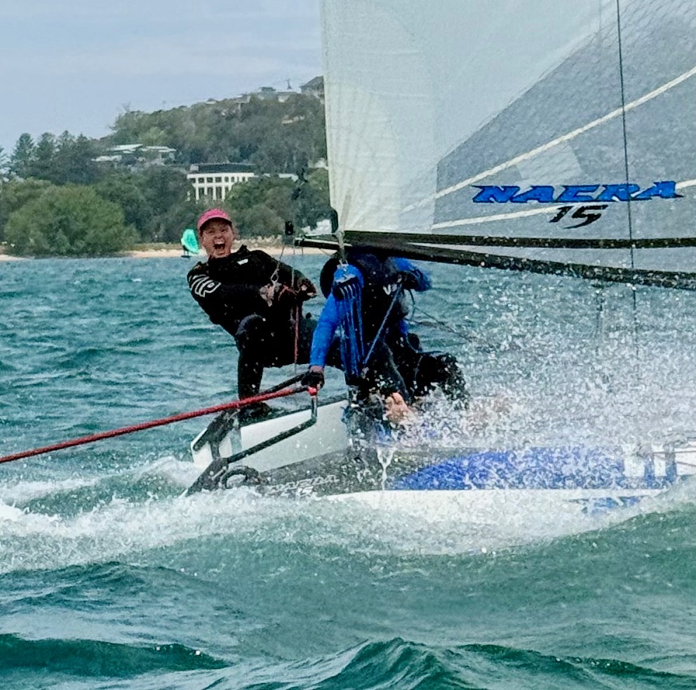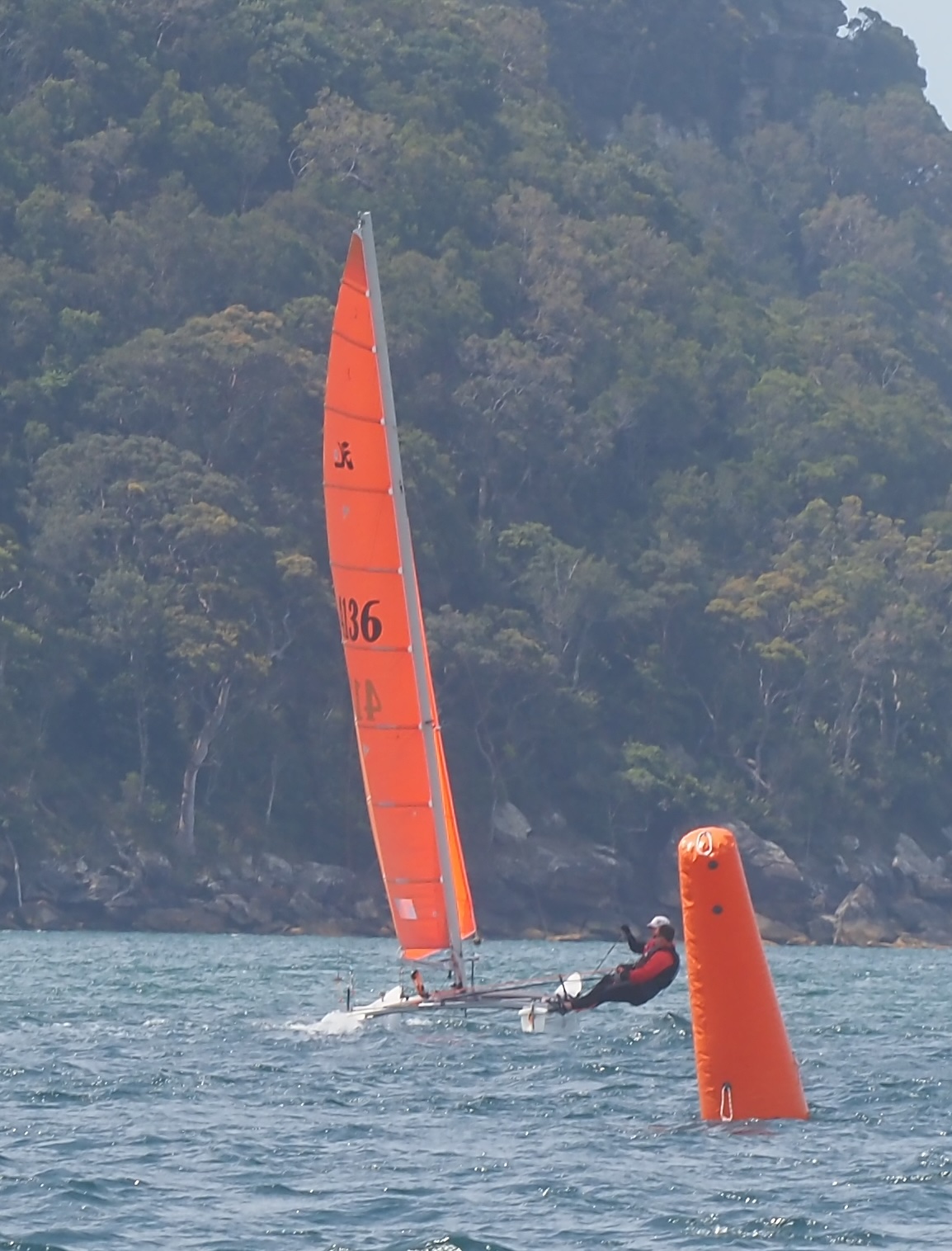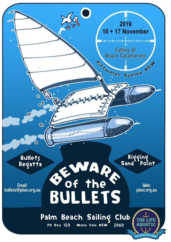 Sunday racing was therefore postponed till about 11:00 while we waited for the wind gods to get out of bed. They argued amongst themselves about direction for a while, with some confused winds making the first race a bit awkward, but the nor-east god eventually took the helm and we got in two more champagne races in glorious 12 knots and brilliant sunshine - one of those perfect Pittwater days for the ages. A couple of withdrawals - inevitable in multi-day regattas - didn’t upset the score sheets much, with the trophy and prize giving under the shade of Woorak Reserve’s gum trees: 3D printed catamarans with bullets for hulls, the decades old logo for the Beware the Bullets Regatta (thanks to one of our talented volunteers Bec Greentree).