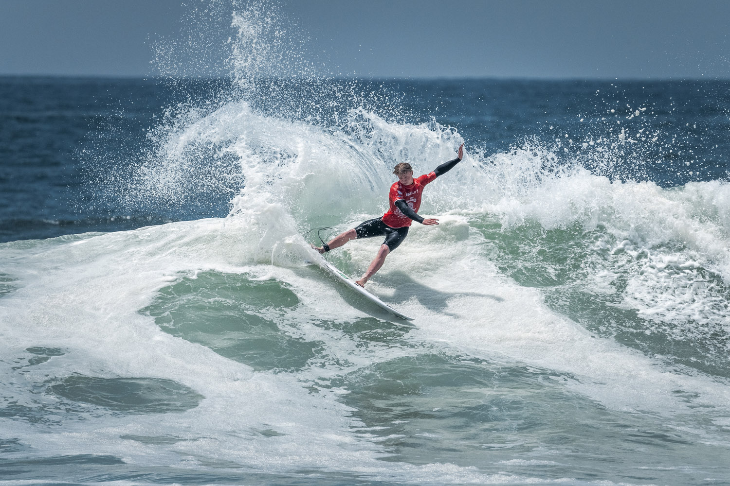 Dropping a tail-high reverse in the middle of a long left, Jacob Turner (HAW) posted the first excellent score of U/18 boys Main Round 3, an 8.23, to win his third consecutive heat. One of the most exciting up-and-coming free-surfers, Turner has already made a name for himself amongst some of the hardest-charging surfers in the world. The 18-year-old has been enjoying being a part of Team Hawaii, even if he’s not convinced a competitive future is on the cards.
