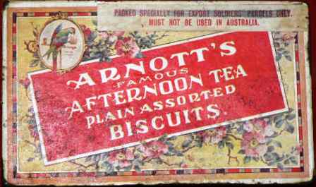 Fetching between $1700 to $2000.00 for earlier tins, and some asking $24.00 for tins only a few years old, all who have Arnott’s biscuit tins to store your own homemade Anzacs and cakes in, may want to relegate them, and their attractive finishes, to collectors items ands spare them the rust caused by water. Despite the Arnotts Company becoming the property of Campbell’s Soup (US) in 1997, many people collect these tins in each year’s edition (usually at Christmas or in other celebratory anniversaries and issues to celebrate events) due to their ‘Australian’ connection. Arnott’s was considered an ephemeral Australian company; during the Depression they cut back workers hours to three days a week rather then dismiss people. They created and sent special biscuits in soldiers only tins for our troops during both WWI and WWII. They sold biscuits to many places overseas and around 10000 tons per year in Australia annually (1930’s).