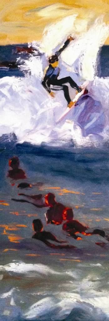 Cindy Goode Milman is the popular ocean swim and ocean pool painter who resides in Clareville. Cindy says that “the closure of Newport Art Gallery led to a limited amount of gallery space left on the northern beaches for professional and well-established artists to engage with the local community and that the Avalon Recreation Centre is a perfect hub to create a wonderful show alongside the annual return of the textile event, as well as the the return of Mark Rhodes to the upstairs space in the centre”. Cindy will be showcasing a range of new paintings that include a surfer theme as well as displaying her popular miniature sculptures using found swimming goggles as objects for the sculpting with a surprise range of terrariums on show.