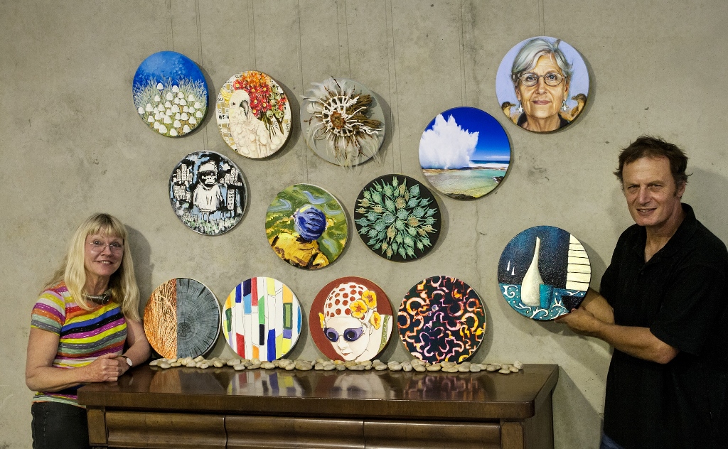 This week we focus on Artspots’ charity initiative. Sixteen of the artists have created 12” round artworks, which will be available via silent auction raising monies for local Avalon gardener Michael Symons’ almost 10 year old charity group called Cobra and Mongoose (www.cobraandmongoosecharitygroup.com.au ).
