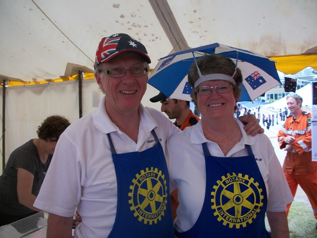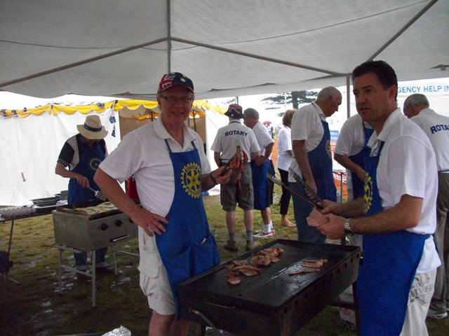 The Rotary Club of Pittwater cooked and served around one thousand breakfasts, less then previous years due to the weather, but enjoyed by those who ate bacon and egg and sausage and eggs rolls. All funds raised on the day for all activities, food and drinks are divided between volunteer groups Rotary Club of Pittwater, Cottage Point Rural Fire Service, Lions Club of Avalon, Lions Club of Pittwater, SES Warringah/Pittwater and the Zonta Club of Northern Beaches, who were all also on hand on the day. Larraine Hall, who organises Pittwater Rotary’s involvement, ensures the left over perishable food which is unable to be returned for refund is collected by Oz Harvest, a charity which collects excess food which would otherwise be discarded. This excess food is distributed to the vulnerable in Sydney. Check out their web site: http://www.ozharvest.org/ Photos by AJG