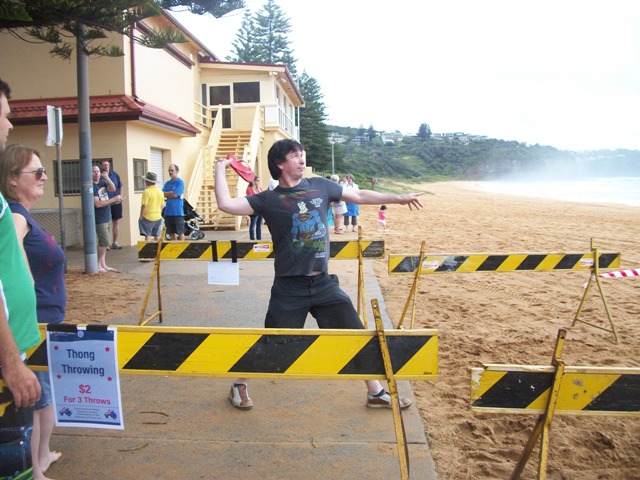 Thong Throwing Competitors Above: Guy Radnidge (39m) and Below: Danielle Chambers (19m). Photos by AJG.