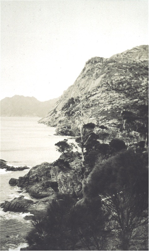 Photos: Sleepy Bay with lower slopes of Mount Parsons in background - Freycinet Peninsula by Henry Allport (1890-1965), 1933. Paperbark flowers, Pittwater by A J Guesdon, 2012.