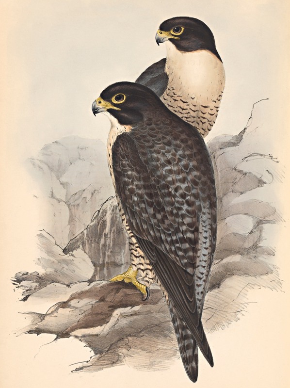 John Gould (artist) and Elizabeth Gould (lithographer) Falco melangenys (Black-cheeked Falcon) 1848 - from page 145