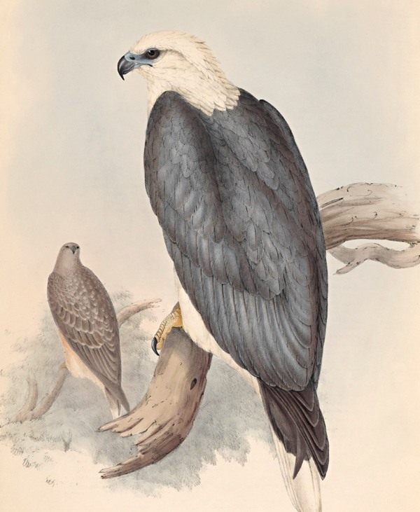 John Gould and Elizabeth Gould Ichthyiaëtus leucogaster (White-bellied Sea-eagle) 1848: Adult, in front; immature, behind - page 58