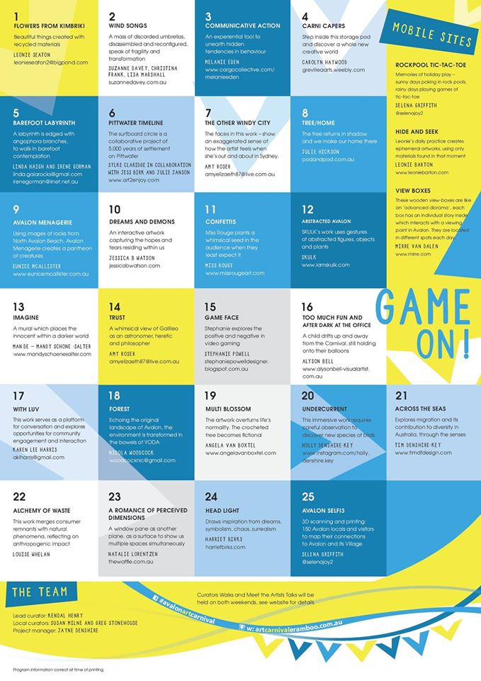 Months of preparation, creating and collaboration will soon reveal Avalon Art Carnival: THE GAME – a creative arts experience to instil a sense of wonder, fun and excitement created by artists, and site-specific to Avalon.