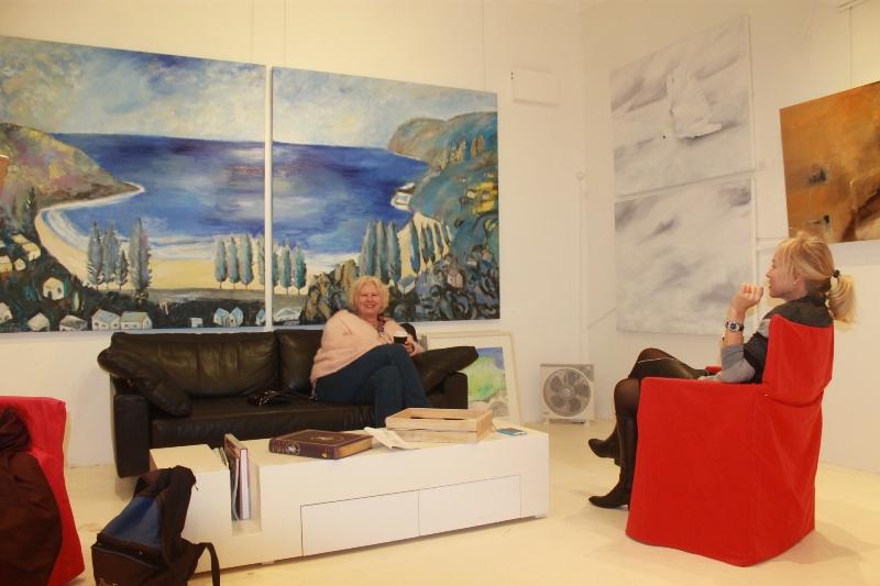 Gouaches and large canvasses from Sylke Claridge’s travels to the Greek Islands have filled the light airy space this Entrepreneur/Artist has created. Sylke works are mostly landscapes – the elements of air, earth and water imbued with energy.
