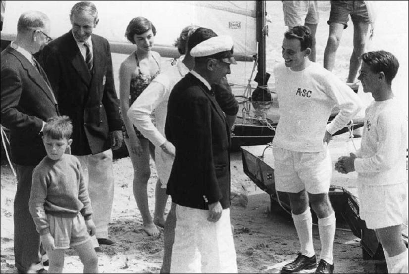 The local families continued to join the club. The Bate family (H.C., George, Ted and Norm), Gordon Ingate, later Australian 5.5 metre champion and to represent Australia in the Tempest class at the Olympic games, and David Forbes nominated June Jensen, later to become David’s wife. Mr. J.G. Vaughan was made the club’s first honorary life member in 1950 for services rendered and for having the foresight to start the club.