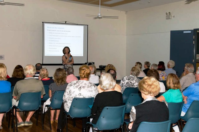 Some time ago Margot Paul started researching her own family history and was soon hooked on this fascinating pursuit. Now she is sharing her experience with others wanting to find their ancestors. As Margot demonstrated there are now a multitude of resources, many free, that are available. Starting with a collection of photos even from relatives you have never met before, can lead to fascinating encounters with distant family members. There are several commercial computer packages but using the free internet resources can get you started.
