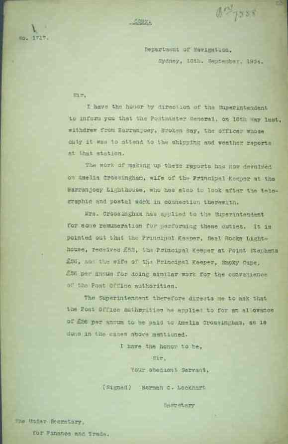 Correspondence made available to all by the National Archives of Australia sheds some light on the Crossingham family's duties: