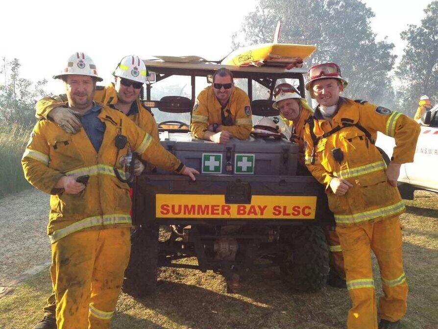 Ingleside RFS volunteers at Barrenjoey Lighthouse fire with one of the North Palm Beach SLSC buggies, courtesy Ingleside RFS.