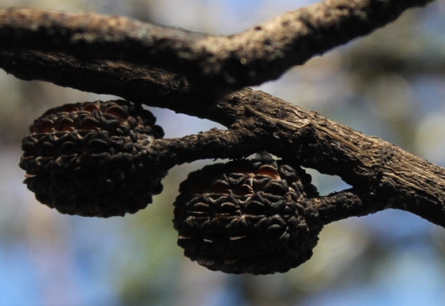 Just yesterday (12.10.2013) a staffer went up the hill to see what may be rising from the blackened earth or have fallen from seed pods which require the heat of a bushfire to open and spill the next generation of Australian bushflowers out. Open they are and the seeds have fallen to earth.