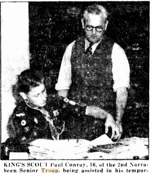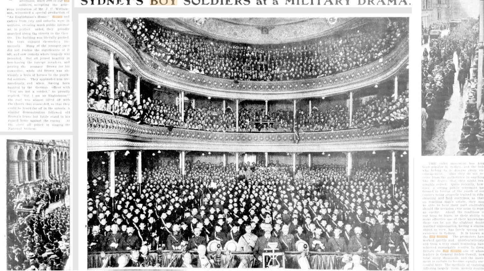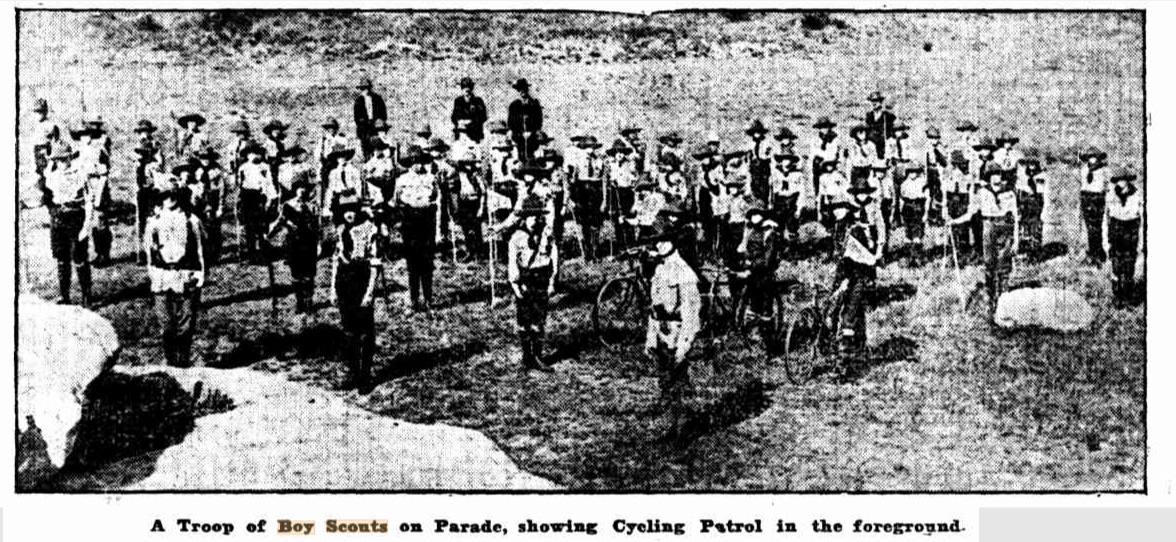 A. Jamieson, of North Sydney, called at the 'Sunday Times' office on Friday and stated that be had formed a complete patrol on the North side. He has with him Frank Cook, B. Peterson, E. Dunshoay, J. Clark, and three others. This patrol has selected the name, 'Sea Gulls,'' and they have obtained permission to use the Congregational School Hall In which to train. Although no complete details have yet come to hand, it is stated that three additional patrols are in course of formation at Mosman. 'The Crows,' of which E. Robertson is the leader, constitutes one, but we expect to have more detailed Information relating to them next week. "The Boy Scouts' Gazette" (1908, September 13). Sunday Times (Sydney, NSW : 1895 - 1930), p. 3 (The Sunday Times MAGAZINE SECTION). Retrieved from http://nla.gov.au/nla.news-article126746844