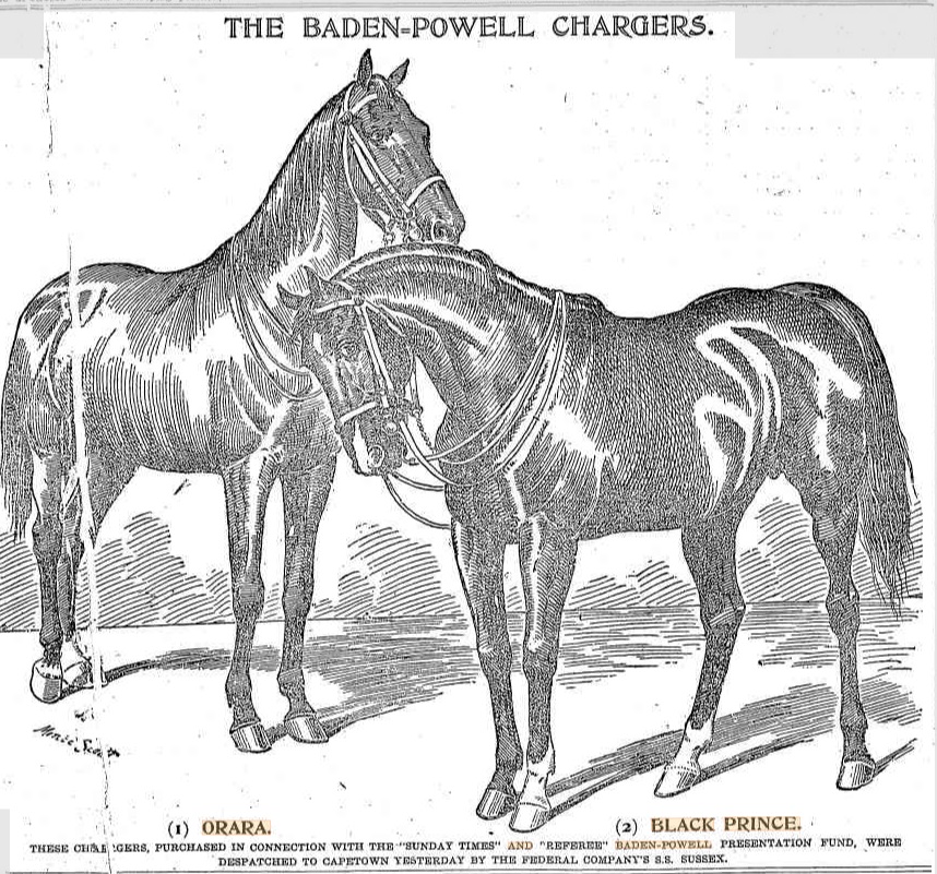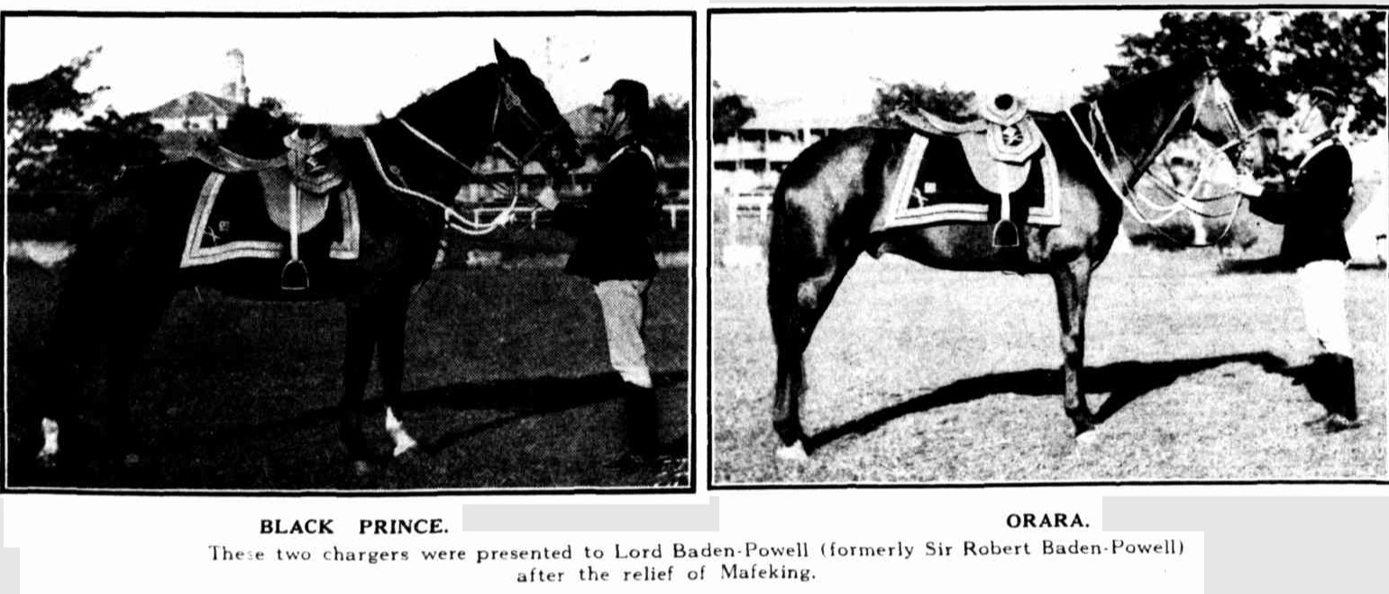 BLACK PRINCE. ORARA. These two chargers were presented to Lord Baden-Powell (formerly Sir Robert Baden-Powell) after the relief of Mafeking.