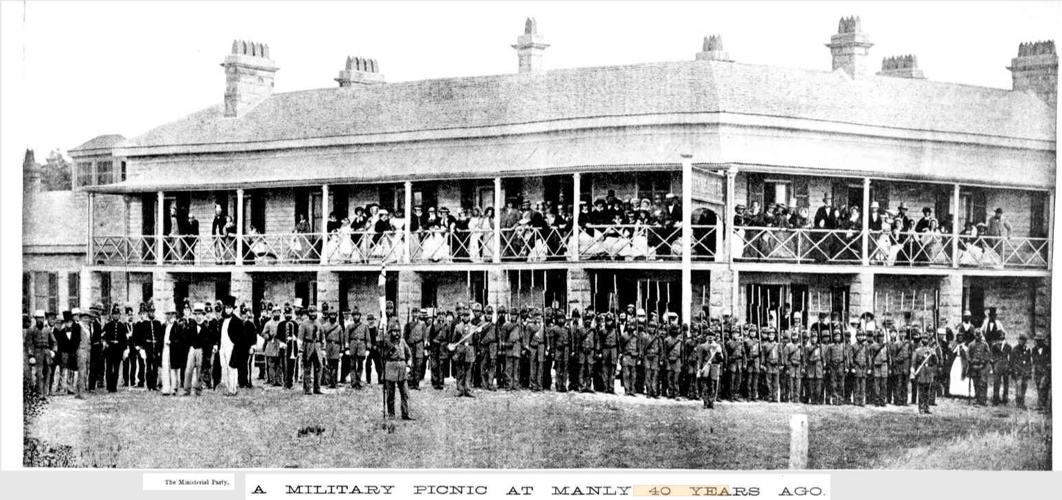 The main feature of the picnic was the cordiality of the Ministry towards the volunteers. Mr. Robertson, when proposing the health of Captain Windeyer, mentioned that he (the captain) was the son of one of the greatest men who had ever appeared in this country, and who was one of his (Mr. Robertson's0 earliest and warmest friends. He said also that the captain was a gentleman who had distinguished himself in every walk of life that he had entered upon ; he had been the most enthusiastic, the most indefatigable in obtaining the establishment of the volunteer movement, and had, as one result, been elected captain by two companies. Captain Windeyer, in responding, acknowledged Sir John Robertson's kind remarks. It is evident from the report of this picnic, and others that took place in the ' sixties,' that loyalty was then as strong in the colony as it is now, and the late Sir Henry Parkes's disparaging allusion to our '’tin soldiers '' (which provoked the greatest indigitation in Sir William) has had the most complete refutation in the deeds done by our colonial troops on the veldts and kopjes of South Africa, where their soldierly qualities have won them golden opinions from the British generals. In order to show that at that time civilians were not behind the military in the use of the rifle, it may be mentioned that at the fifth annual ' wayzegoose' of the'' Herald ' Office, held at the ' Steyne ' on August 24, 1861, shortly before the picnic already discussed, the first and second prizes in a rifle match were won by W. Rayner, reporter, and Mr. Samuel Cook, at that time the head of the Parliamentary repotting staff, but at present the general manager of the ' Herald ' Office. These two were civilians ; the third prize was won by a Mr. Kirkptrick, a compositor, who was a volunteer. A MILITARY PICNIC AT MANLY 40 YEARS AGO (1900, June 23). The Sydney Mail and New South Wales Advertiser (NSW : 1871 - 1912), p. 1472. Retrieved from http://nla.gov.au/nla.news-article165296719